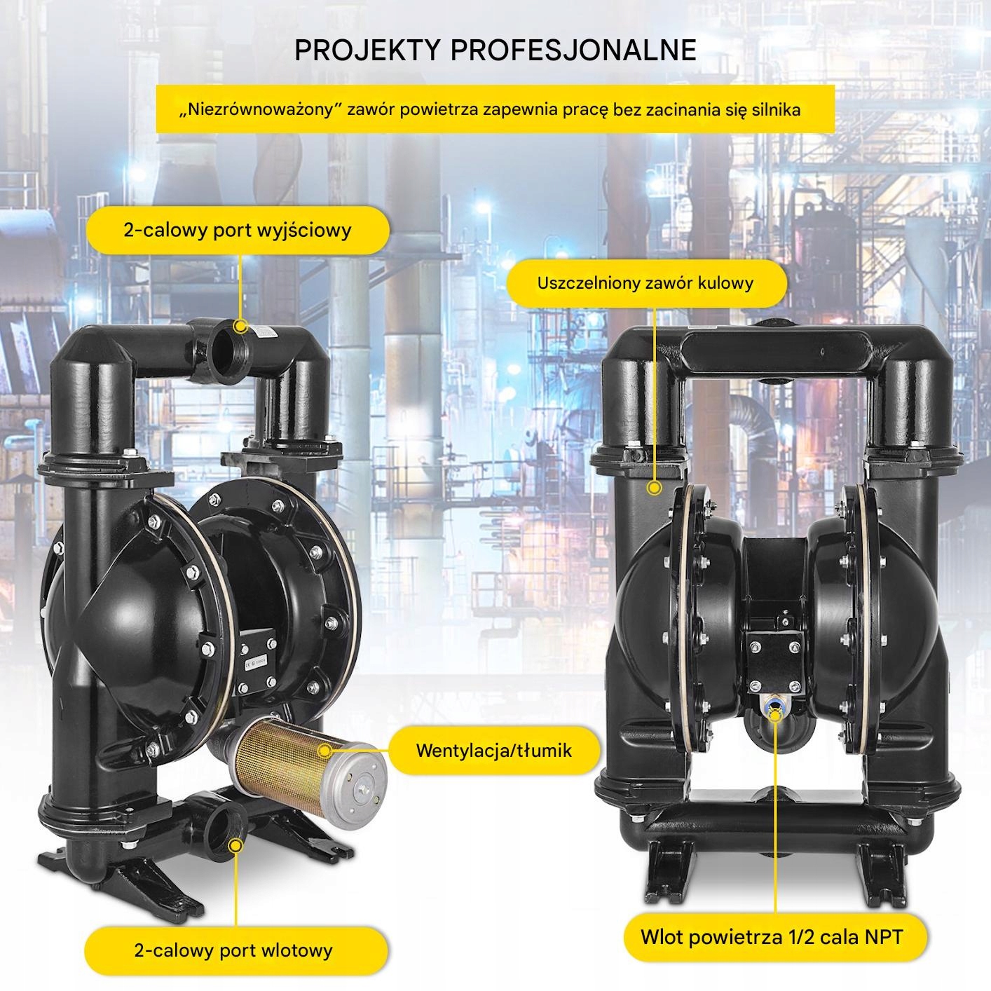 Пневматичний насос з двома батерами -це ефективний та універсальний пристрій , який буде працювати при промисловому перекачуванні рідин, таких як хімічні речовини, олії, фарби, кислоти та стічні води. Завдяки вражаючій ємності 530 л/хв та діаметром входу та виходу 2 "(5,08 см) насос ідеально підходить для застосування в хімічній, харчовій, будівельній промисловості.