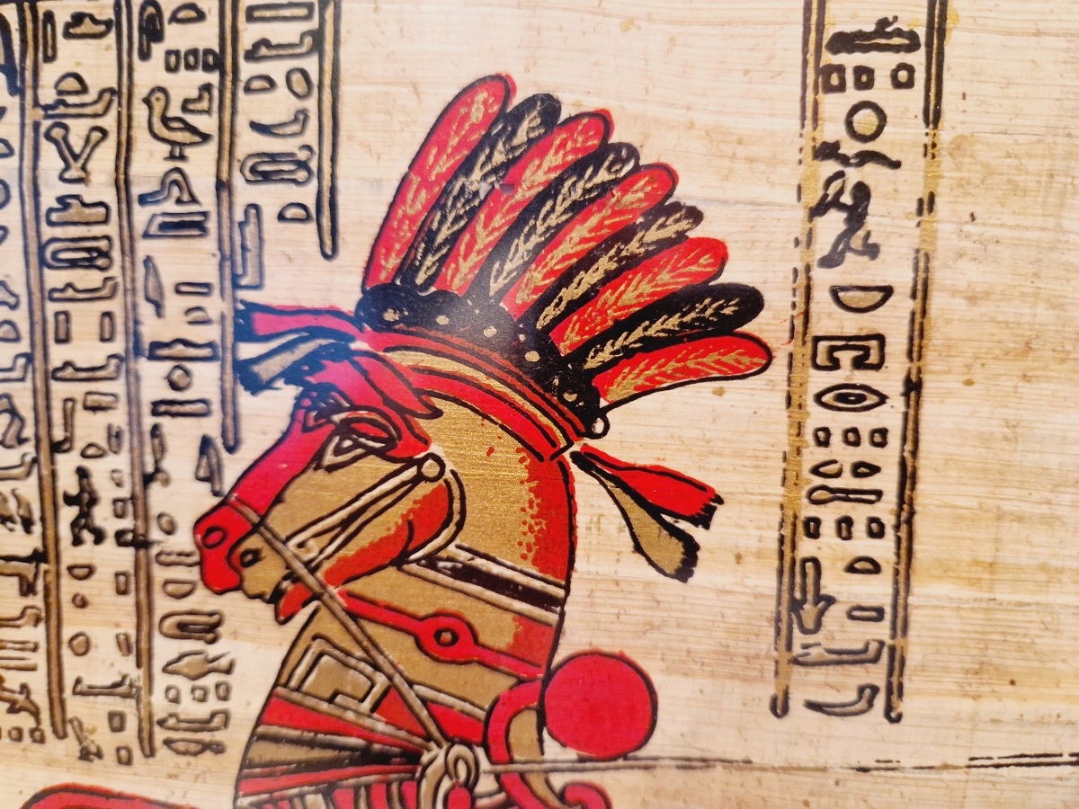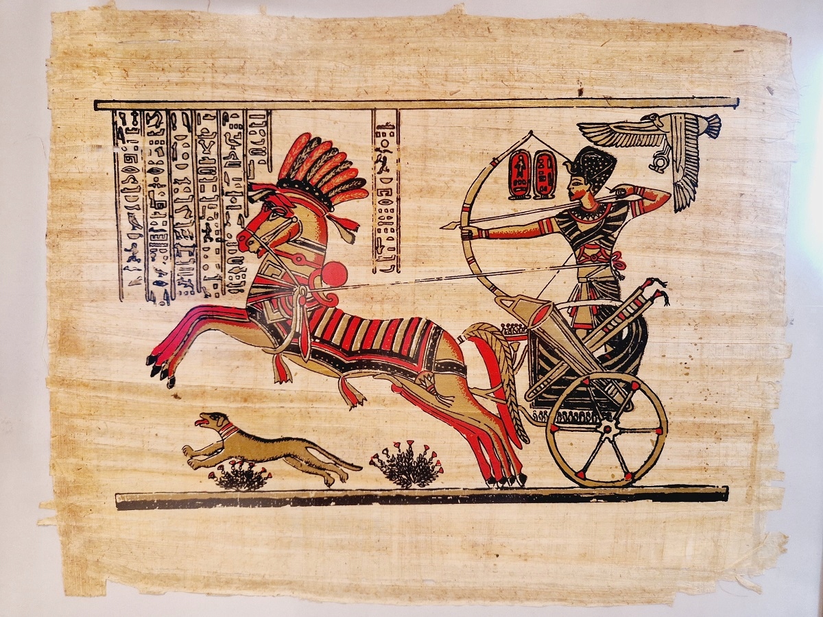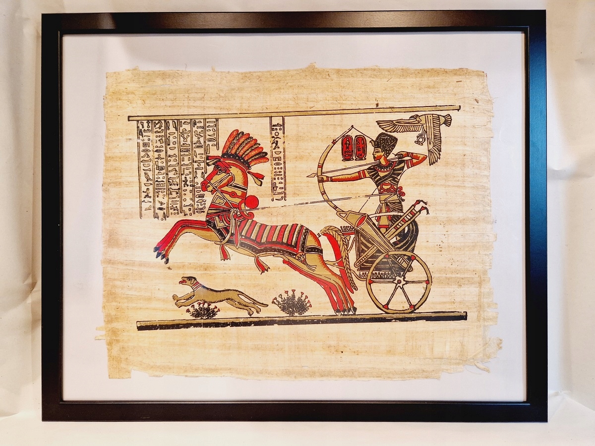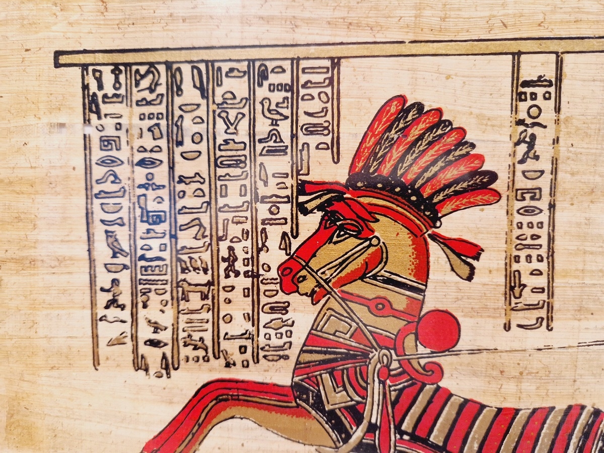 53см х 43см / СУВЕНІРИ З ЄГИПТУ - КАРТИНА З ПАПІРУСУ - Кріплення в рамці ПЛЕКСІ /8737