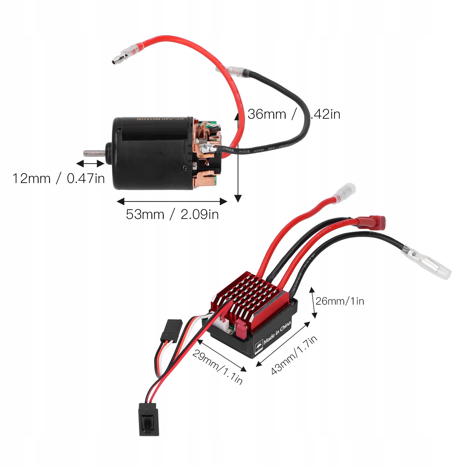 2S Lipo або 6 NiMH: 540 або 550 Розмір двигуна: