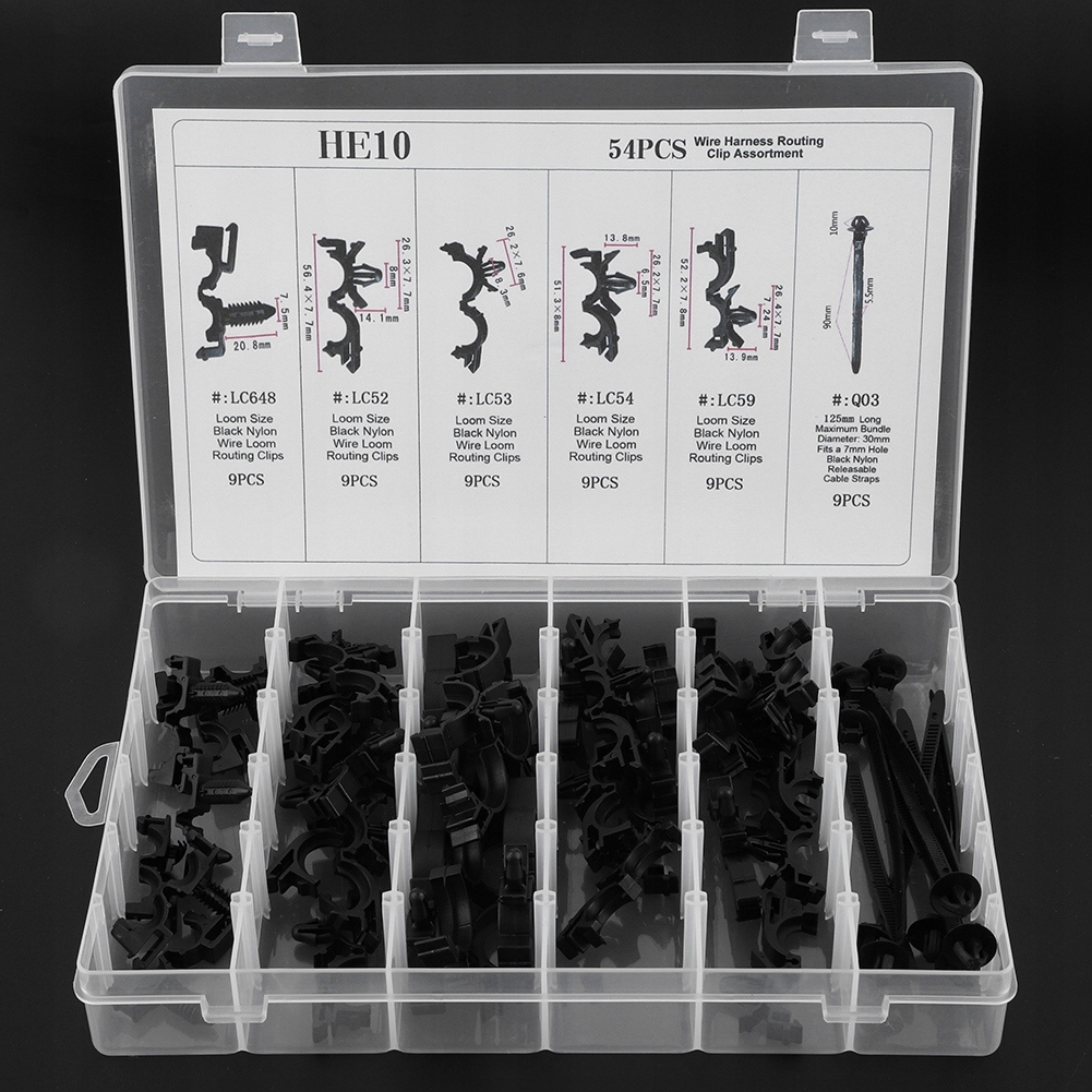 - 1 Pudele (54 шт.) Затискачі променів для кабелю автомобілів містять 6 різних розмірів для задоволення ваших вимог.