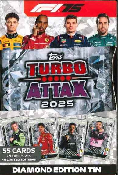 55 карт + 11 обмеження. Can F1 Formula 1 Turbo Attax 2025 Diamond Edition