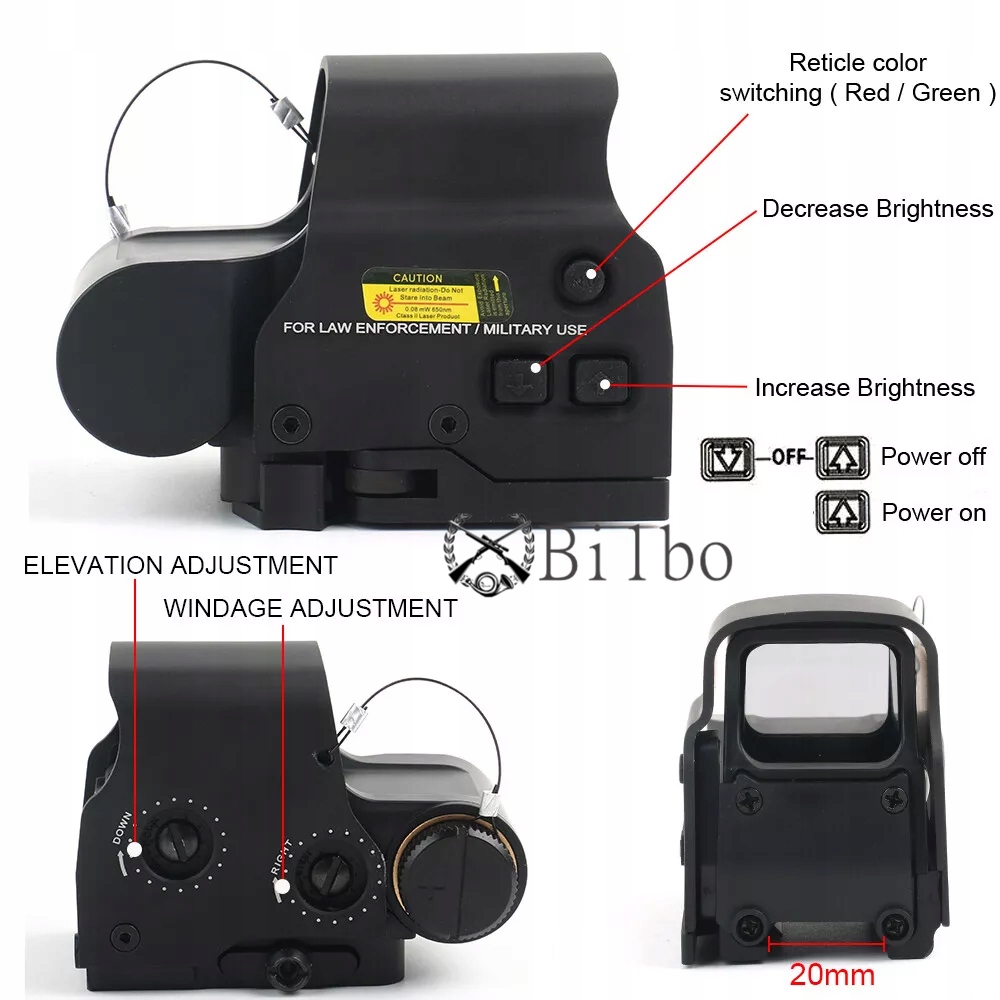 -backlit тип: 20 рівнів червоних та зелених прицілів для забезпечення максимальної гнучкості в різних умовах освітлення