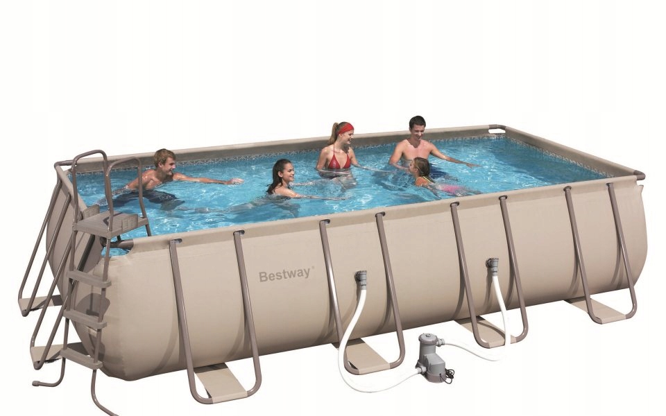Набір для чищення басейну Bestway 56131 складається з кількох елементів, зокрема: висувної телескопічної палиці довжиною прибл. 2,8 м, пилосос для збору відходів з дна та стінок, підключений до насоса, та сито для уловлювання домішок, таких як листя, трава тощо.