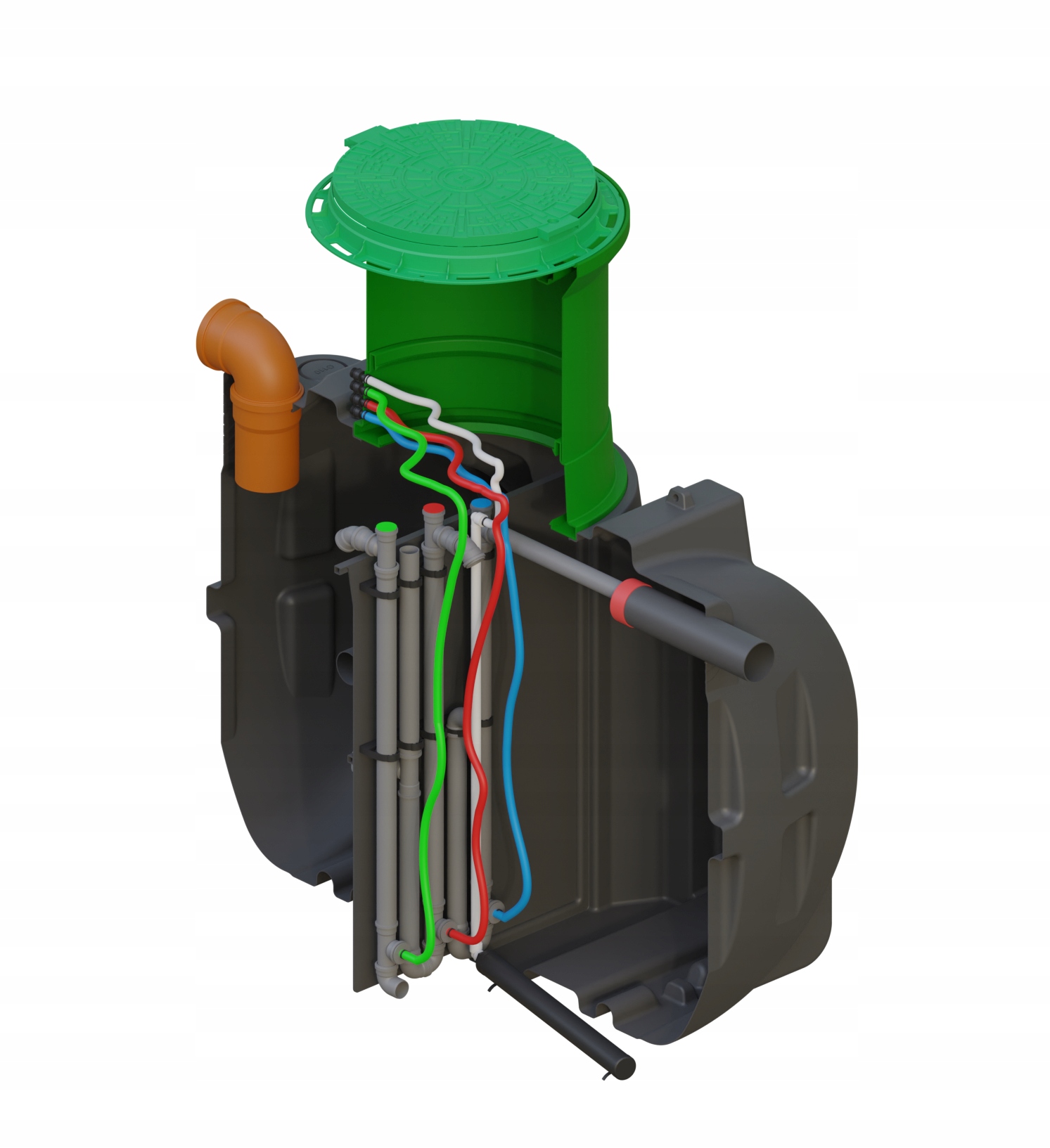 Продукт базувався на одному монолітному щільному руслі з підвищеною масою та міцністю структури. Фабричні гнізда в танк -покриттях -це спинка для довгасті, поперечні зірки. Завдяки додатковим підкріпленням, встановлення танка можливо на значній глибині без необхідності робити додаткові та дорогі бетонні полегшення пластин. Набір включає димохід з естетичної революції із закритим класом A15.