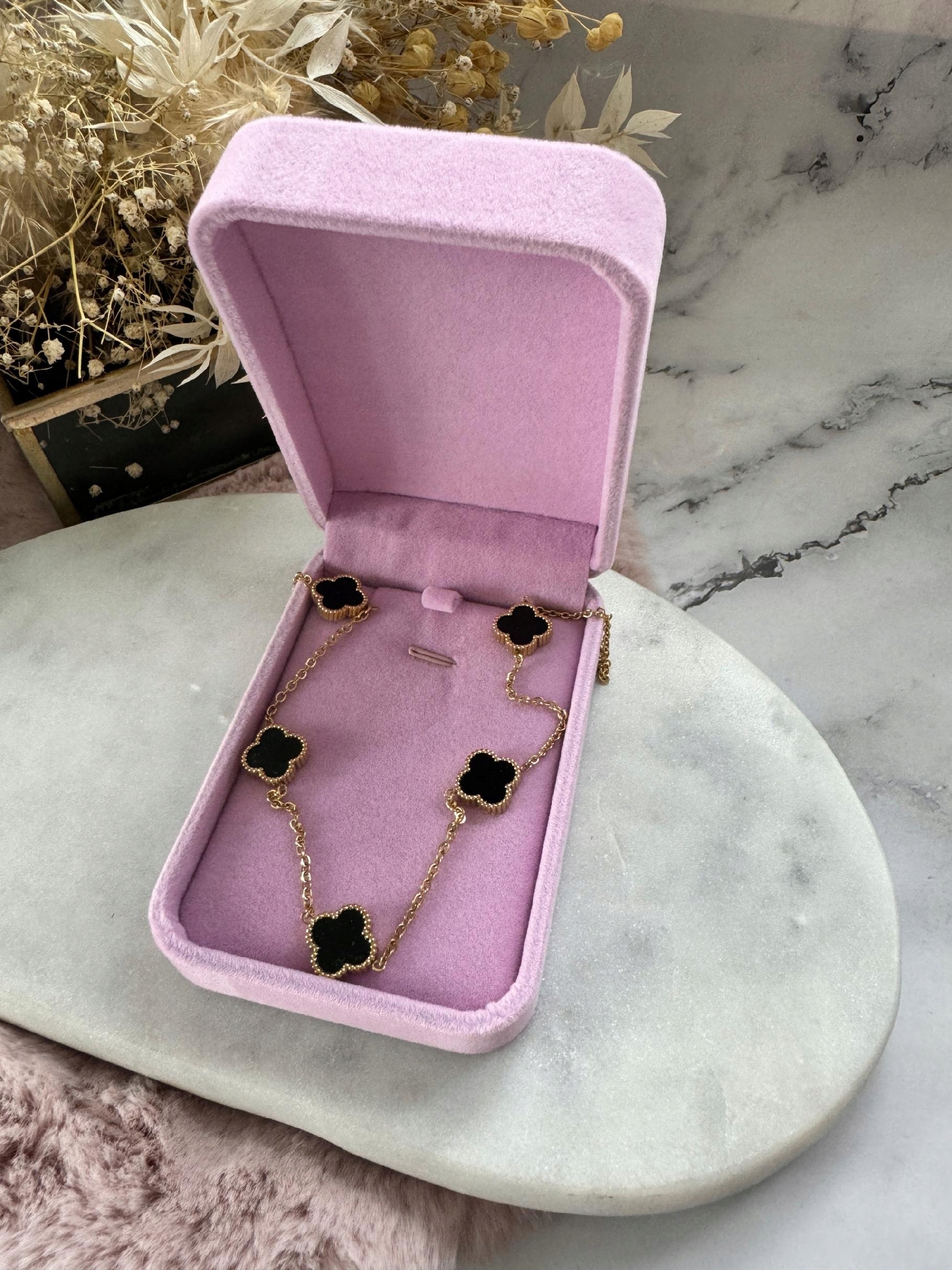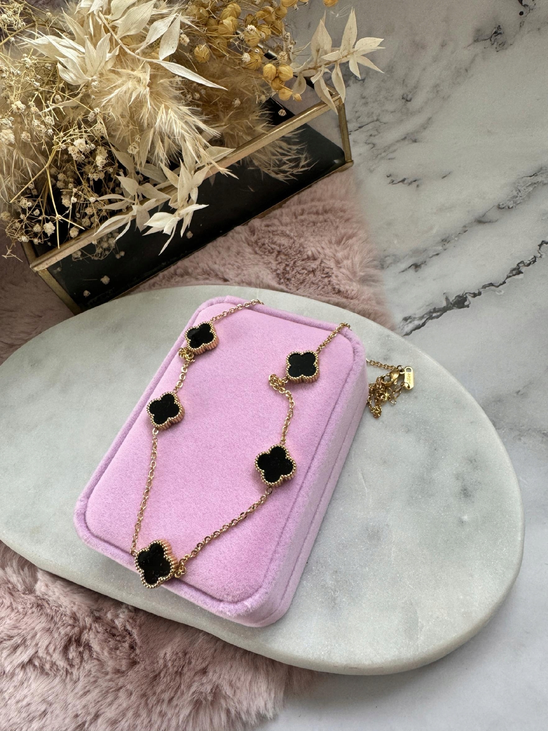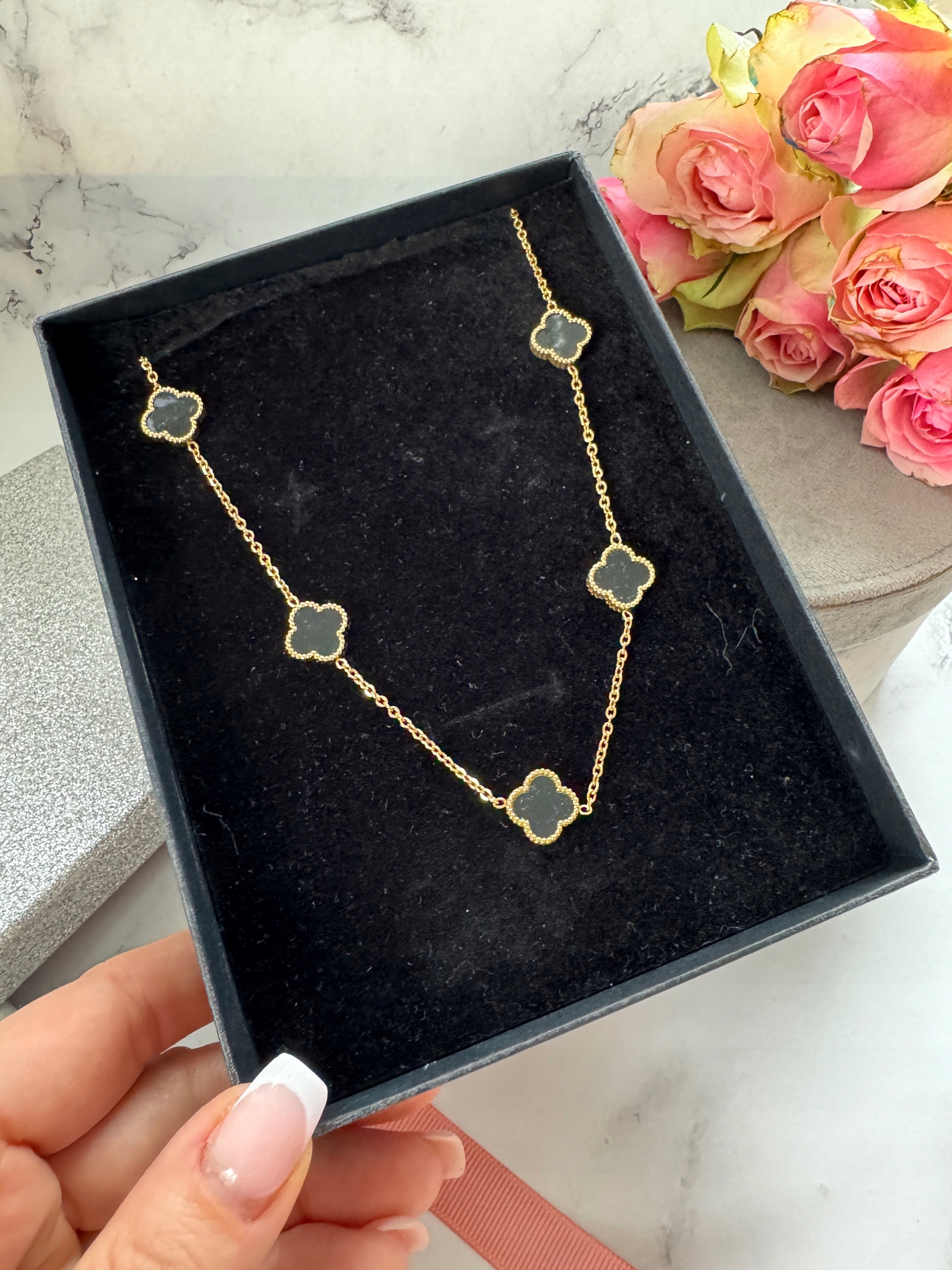 597 Золота конюшина намисто чорна марокканська хірургічна сталь