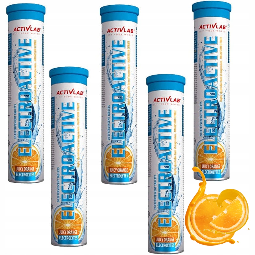 Activlab Electroactive - це дієтична добавка в шипучих таблетках зі смаком апельсина, яка містить електроліти: натрій, калій, хлорид, кальцій і магній.