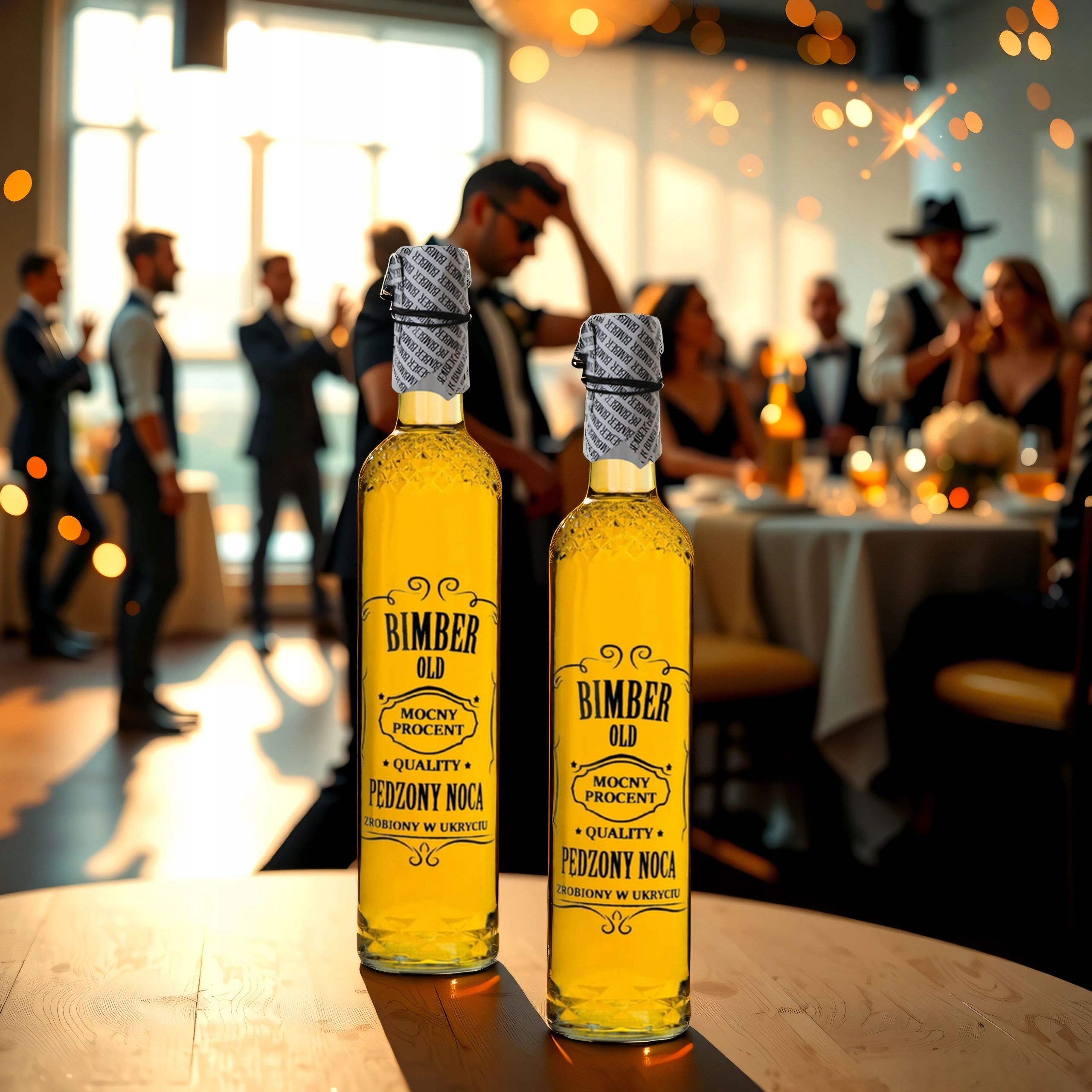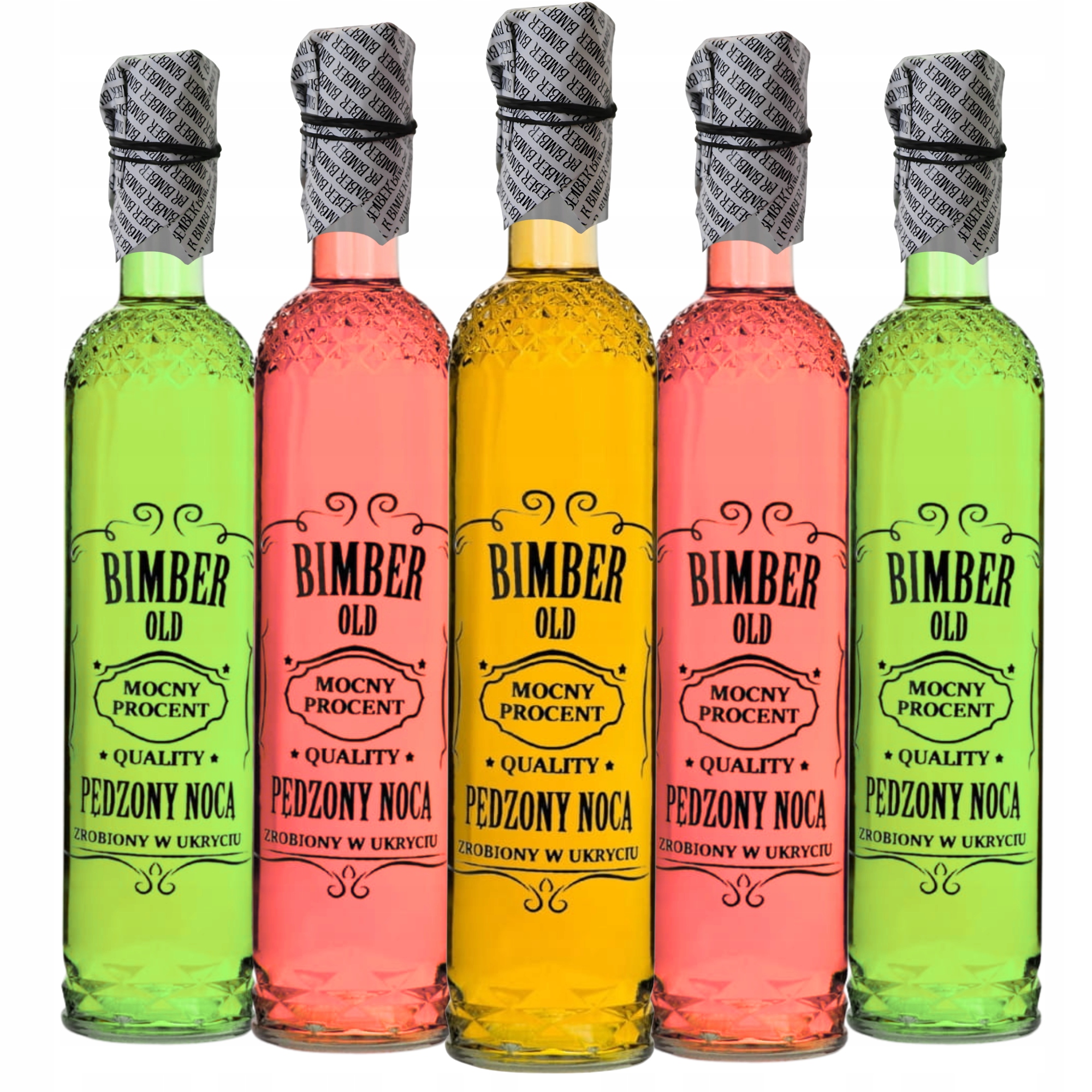 Повний набір пляшок для настоянок, самогону, лікерів або віскі - п'ять скляні пляшки з міцним чорним принтом «RUN BY NIGHT», натхненним атмосферою нічних прогулянок доктора Бімбера. У набір входять синтетичні грибоподібні пробки, паперові кришки з принтом і гумки. Ідеально підходить для домашніх напоїв, подарункових наборів або весільних подарунків.