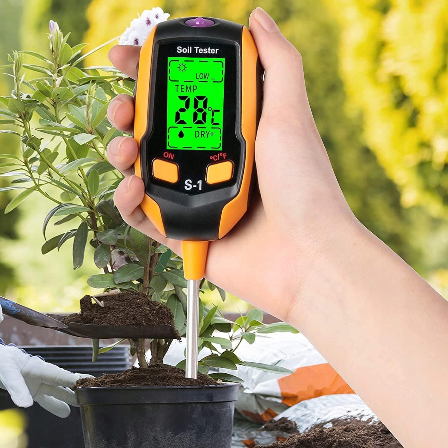 -🌱Ви можете використовувати його для вимірювання сонячного світла (9 рівнів), вологості ґрунту (5 рівнів), рН ґрунту (12 рівнів) і температури (°C і °F).