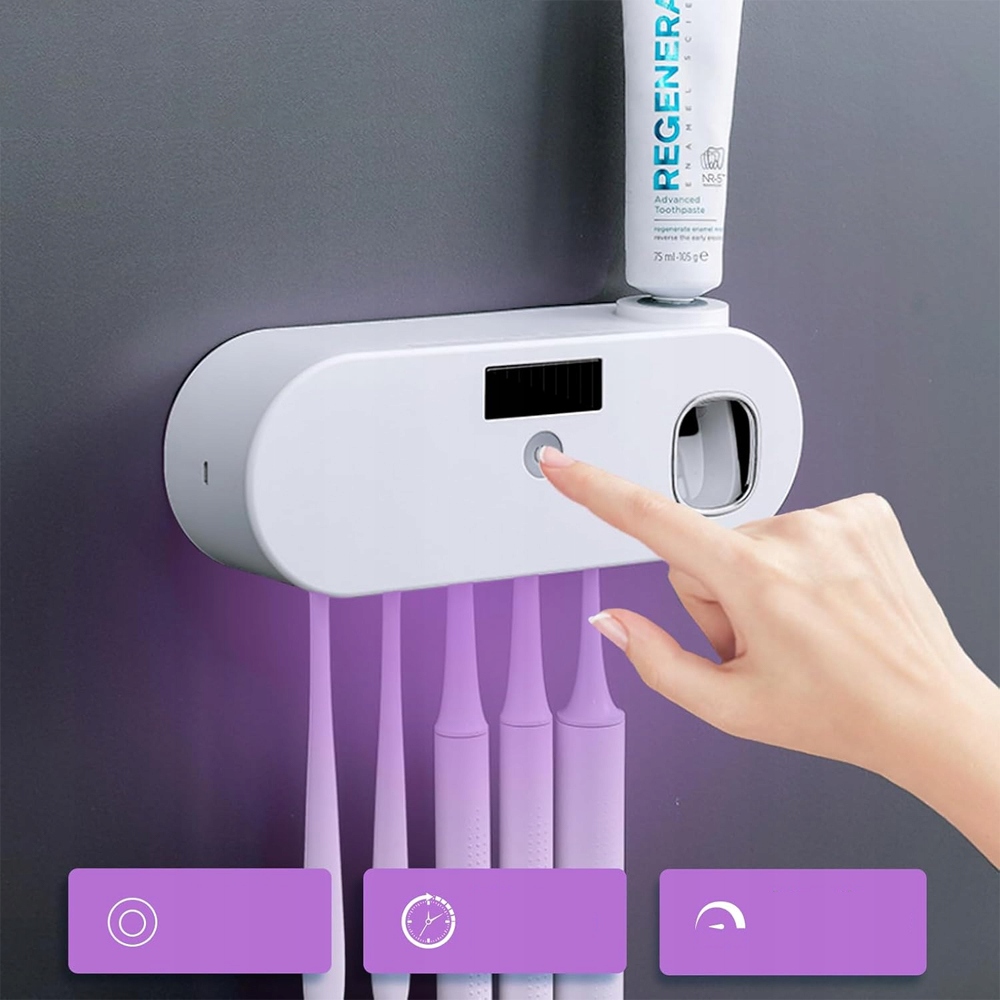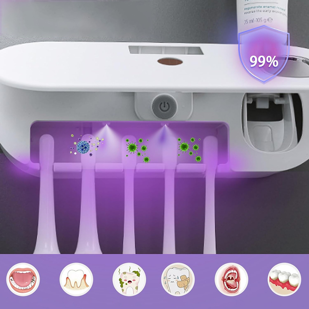 5IN1 Власник щітки з дозатором - без буріння, УФ -стерилізатор