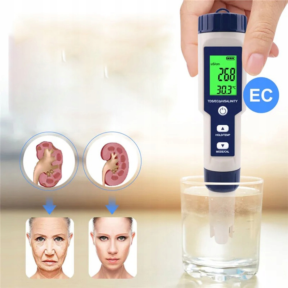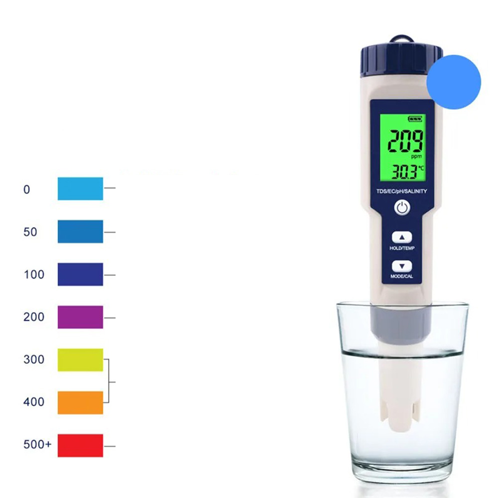 5-в-1 ВИМІРЮВАЧ ЯКОСТІ ВОДИ PH TDS EC ЦИФРОВИЙ АКВАРИУМНИЙ МЕТР ТЕМПЕРАТУРИ