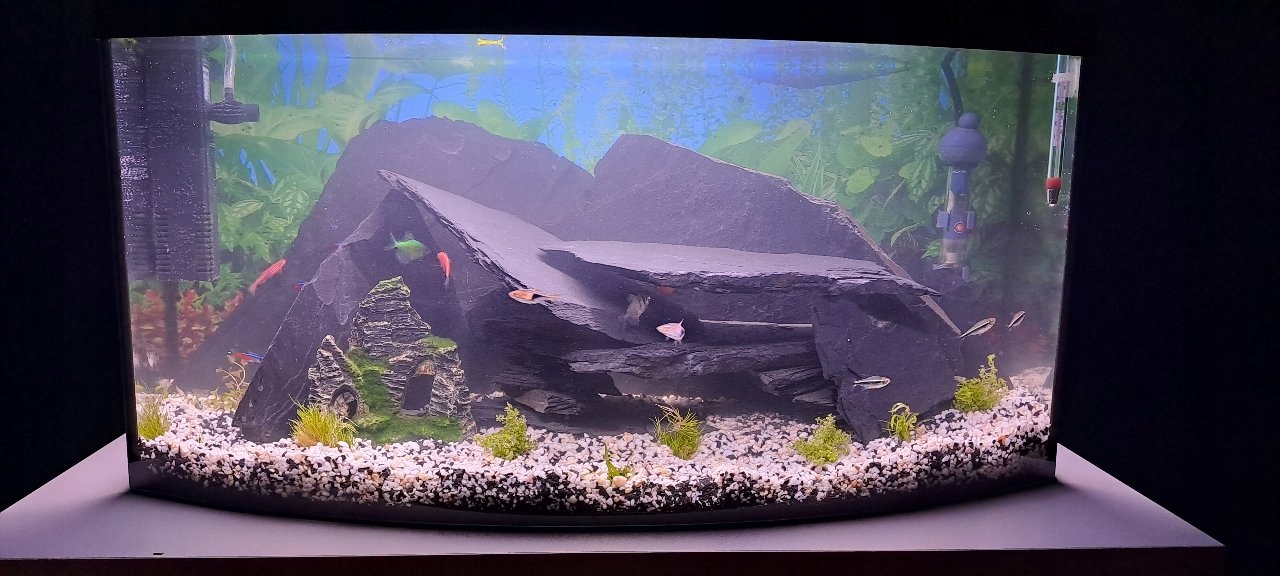 Темні тонкі плитки для розміщення в акваріумі. При контакті з водою вони значно темніють, а в поєднанні з акваріумним освітленням набувають ледь помітного світіння. Темний колір у поєднанні з неправильною формою ідеально контрастує із зеленню рослин і світлою підкладкою в кам'яних акваріумах.