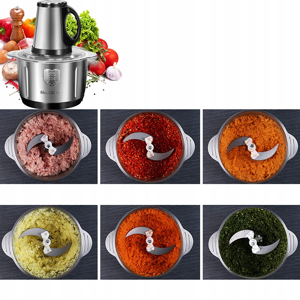 Ця багатофункціональна електрична овочерізка може подрібнювати будь-які види їжі, ідеально підходить для подрібнення м’яса без кісток, овочів, фруктового салату, цибулі та часнику, подрібнення трав, овочів і песто. Можна використовувати для начинки індички, салатів, соусів, дитячого харчування тощо.