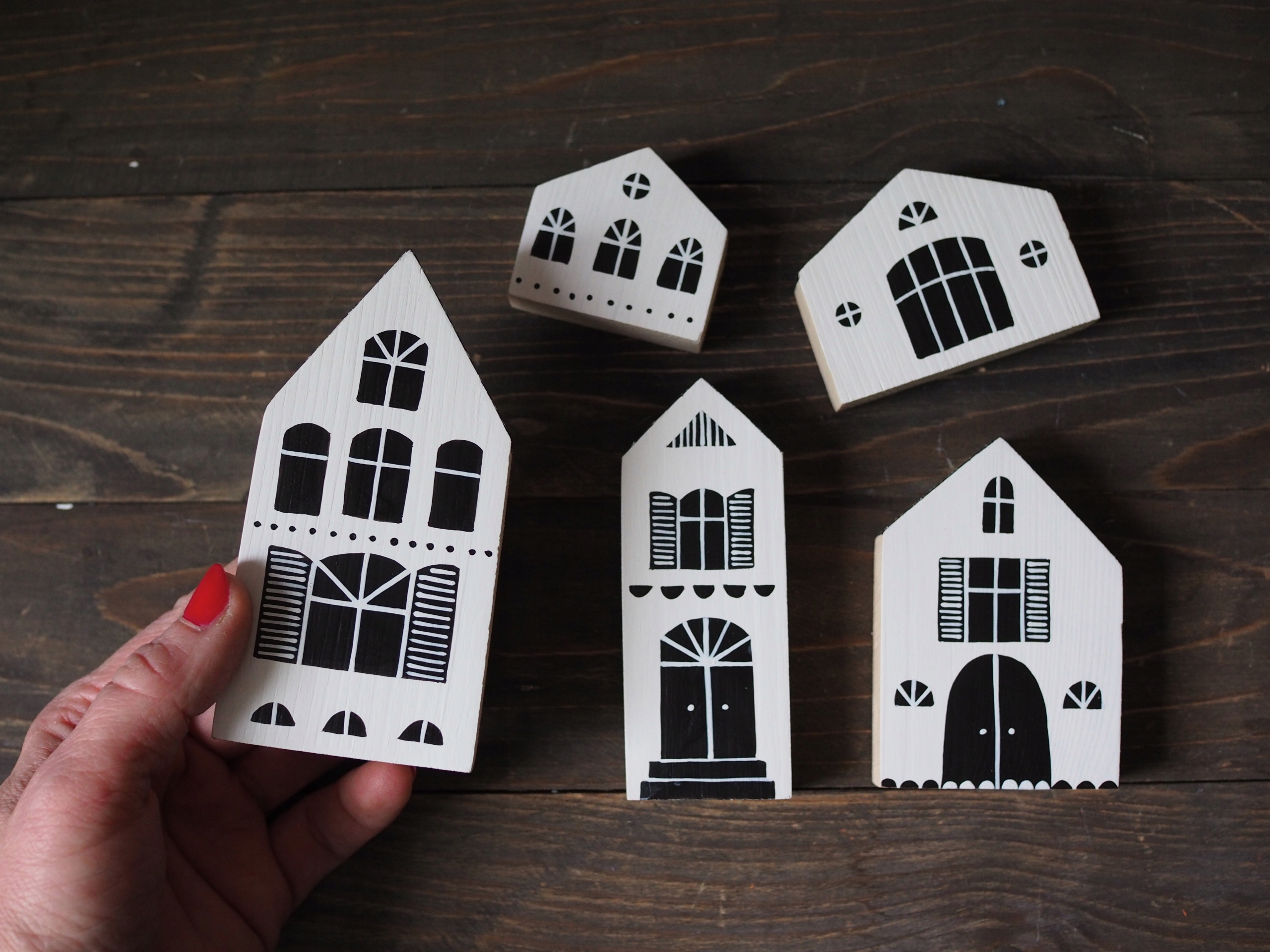 5шт ДЕРЕВ'ЯНІ БУДИНКИ ручний розпис ЧОРНО-БІЛИЙ