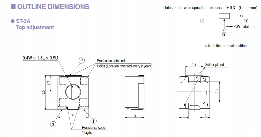 5 шт. 1-оборотних SMD-потенціометрів COPAL, тип ST-3TA10K 10 кОм