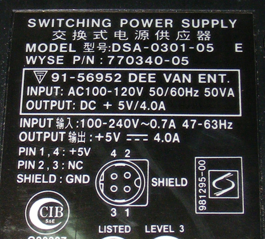 5V 4A DVE DSA-0301-05 Stople