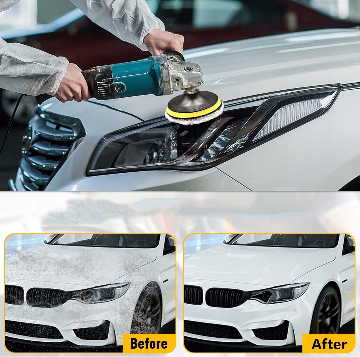 ⛏️⛏️【Багатоетапне використання】Підходить для різноманітних робіт із полірування, таких як полірування або вощення деталей автомобіля, скла, каменю, кераміки, дерева, шкіряних меблів, стільниць тощо. Ідеально підходить для полірування, полірування, фарбування, очищення деталей, остаточне оздоблення, ремонт пофарбованих поверхонь або інших інших дефектів поверхні.