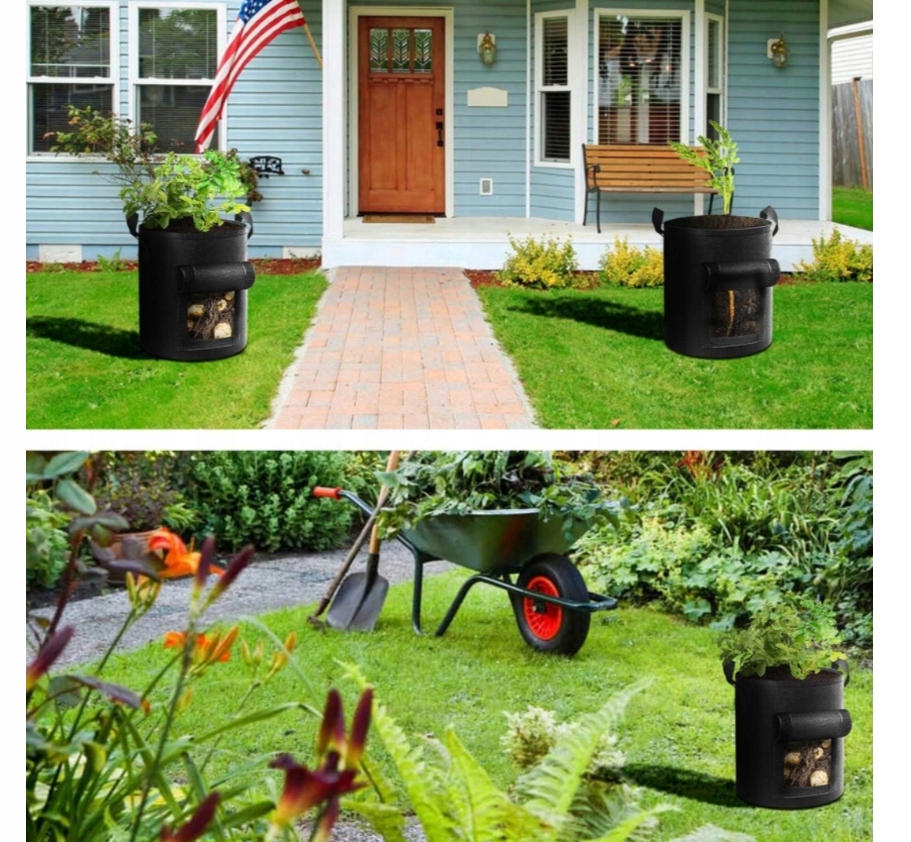5 мішків для посадки з розмірамивисота: 30 см x глибина: 25 см. Ці мішки підходять не тільки для вирощування картоплі, а й для вирощування в домашніх умовах усіх коренеплодів, таких як цибуля, таро, редис, морква та інші овочі.