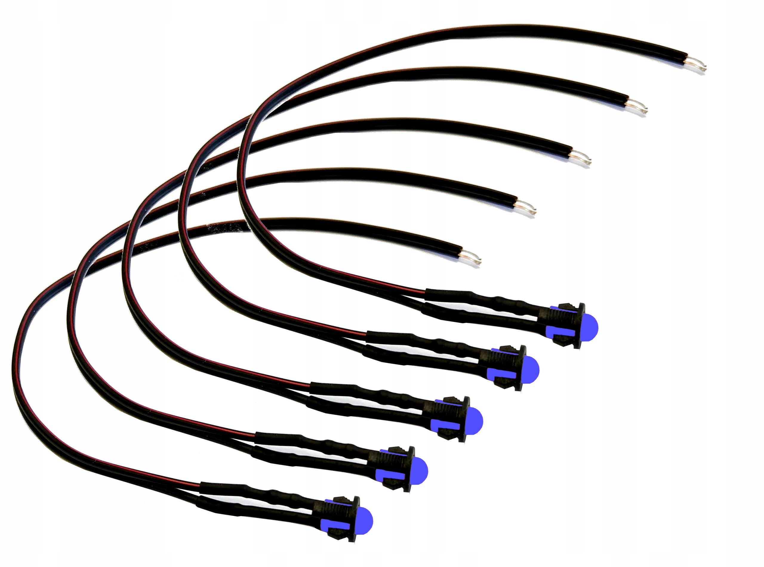 5x LED 5 мм 12V кабель 20 см синій + патрон для лампи