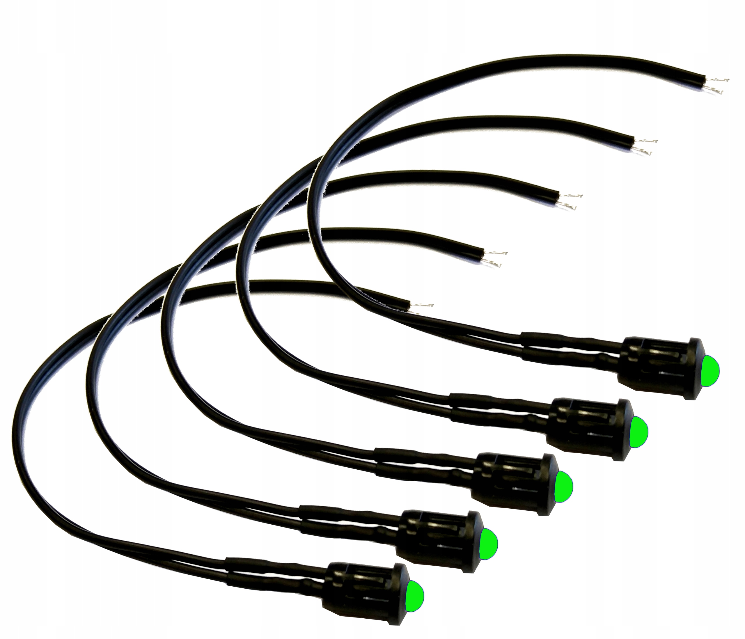 5x LED 5 мм 12V зелений кабель 20 см + патрон для лампи