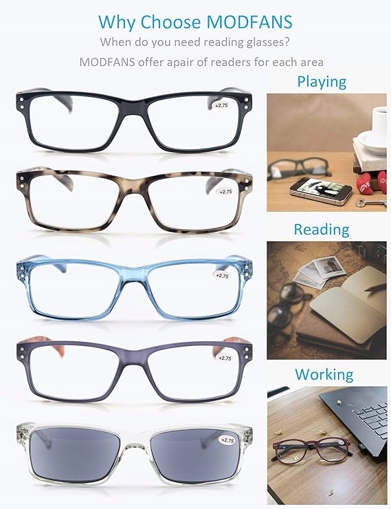- Легкі та міцні: легкі пластикові оправи та лінзи з гнучкими пружинними шарнірними дужками забезпечують зручну посадку без незручного стягування, чітке бачення, справді добре працюють, коли ви не можу прочитати ті крихітні відбитки на газеті тощо. Кожну пару окулярів для читання ретельно відібрано, щоб забезпечити якість