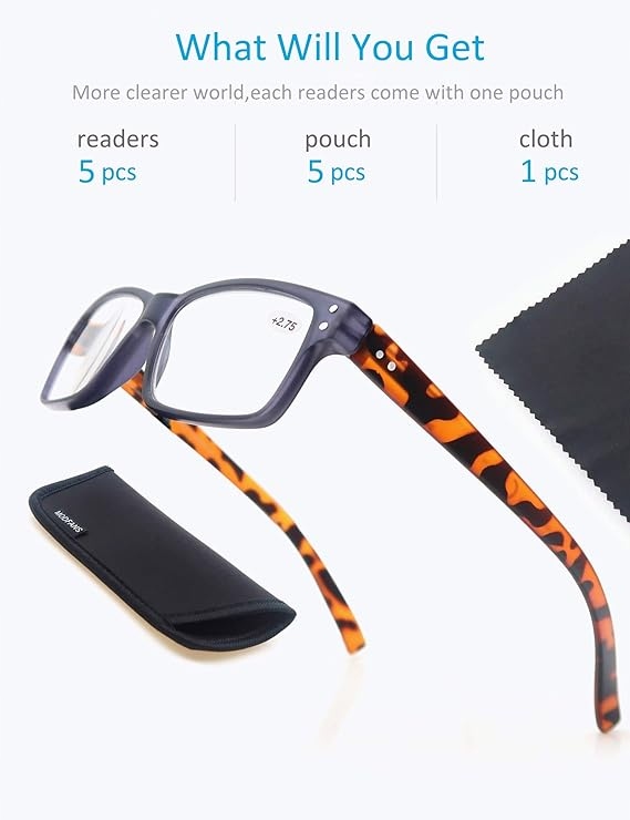 - Лінзи для читання з шарніром: 5 пар окулярів із 5 пакетами за низьку ціну забезпечують чудове співвідношення високоякісного продукту< /li>< /ul>