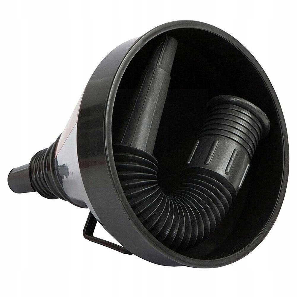 Двокомпонентна воронка з фільтром для палива, масла та інших робочих рідин. Оснащений гнучким наконечником. Широко використовується в гаражах, майстернях і автосервісах. Діаметр воронки 14,5 см