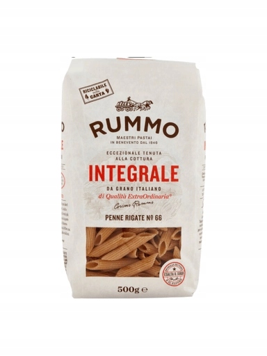 Відкрийте смак італійської традиції з пастою Penne Rigate №. 66 Integrale 500g від відомого виробника Rummo. Ця високоякісна цільнозернова паста виготовлена за традиційними, ретельно вирощеними рецептами. Завдяки використанню добірного цільнозернового пшеничного борошна та повільному процесу виробництва макарони зберігають свій неповторний смак, багаті поживними цінностями.