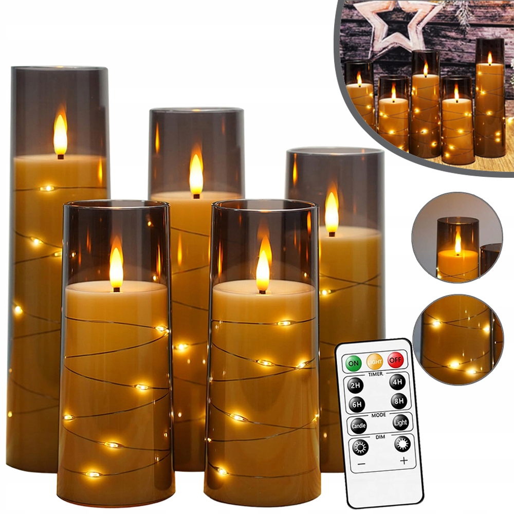 5X СІРИХ БЕЗПОЛУМ'ЯНИХ СВІЧОК, 3D ГНОТ, МИРЯЧІ СВІТЛОДІОДНІ СВІЧКИ, ДЛЯ ВЕЧІРКИ
