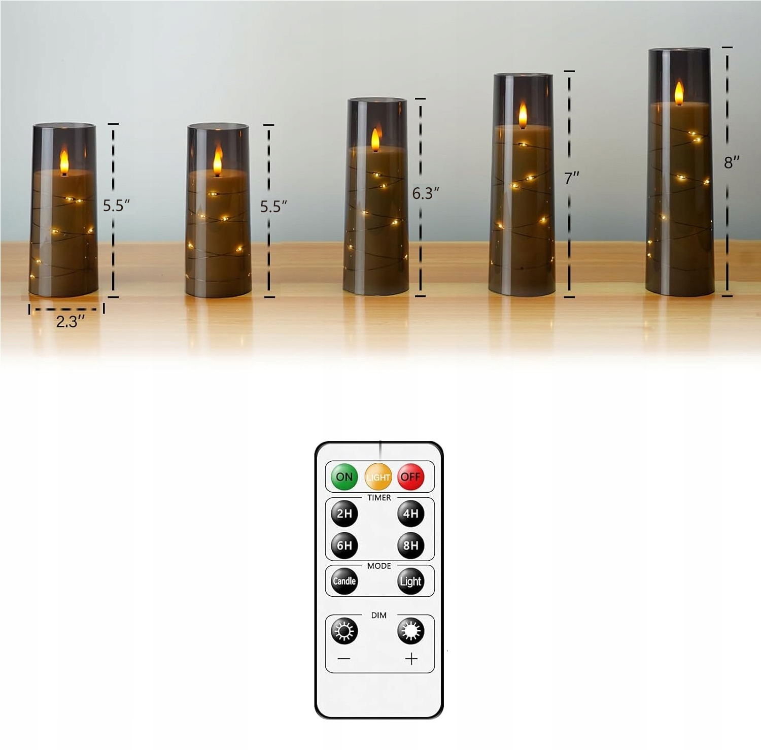 ◾Пульт дистанційного керування, що входить у комплект, дозволяє легко контролювати вмикання та вимикання свічок акумулятора та світлових ефектів. Ви можете вибрати функцію таймера на 2, 4, 6 або 8 годин залежно від ваших потреб, щоб свічка автоматично вимкнулася в запланований час, забезпечуючи більшу зручність і параметри економії енергії.