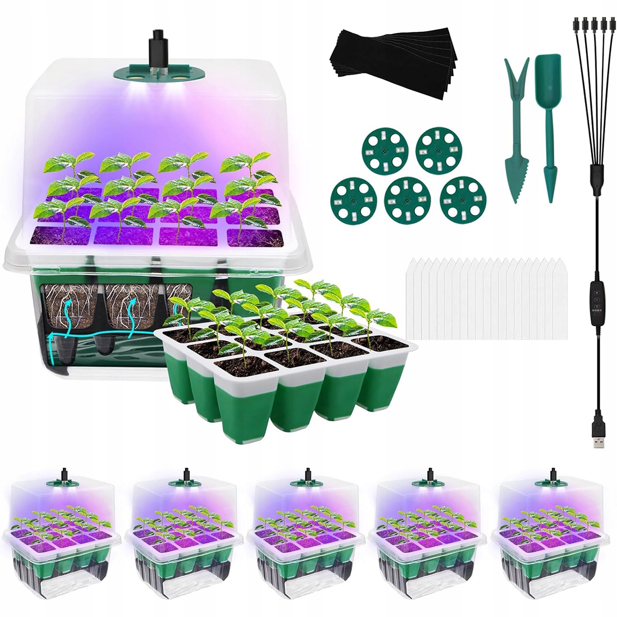 5x СТАРТОВИХ ПІДДНОКІВ ДЛЯ ВИРОЩУВАННЯ РОСЛИН НАСІННЯ КВІТІВ ТЕПЛИЦІ СВІТЛОДІОДНІ ЛАМПИ