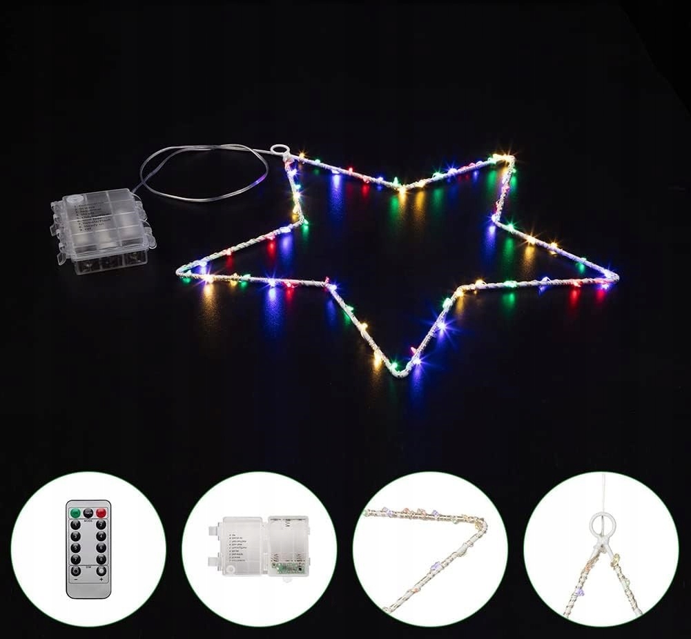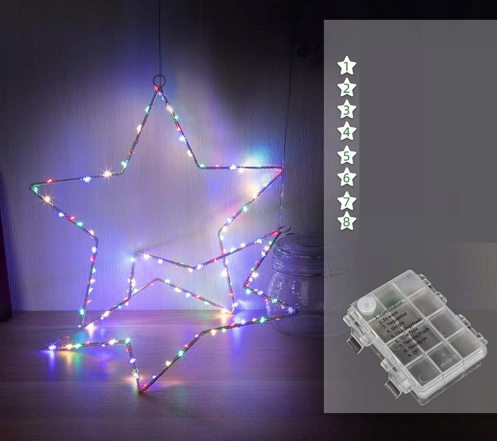 5X СВІТЛОДІОДНА ДЕКОРАТИВНА ЗІРКА ДЛЯ ВІКОН З БАТАРЕЄЮ - КОЛЬОРОВІ РІЗДВЯНІ СВІТЛОВІ RGB