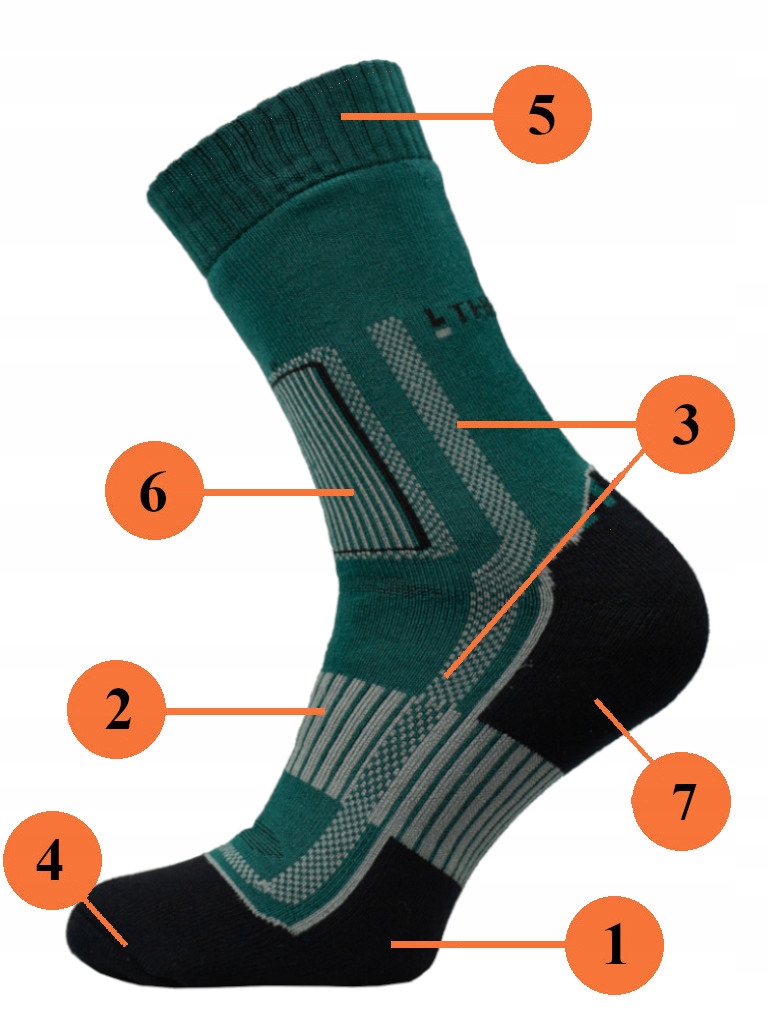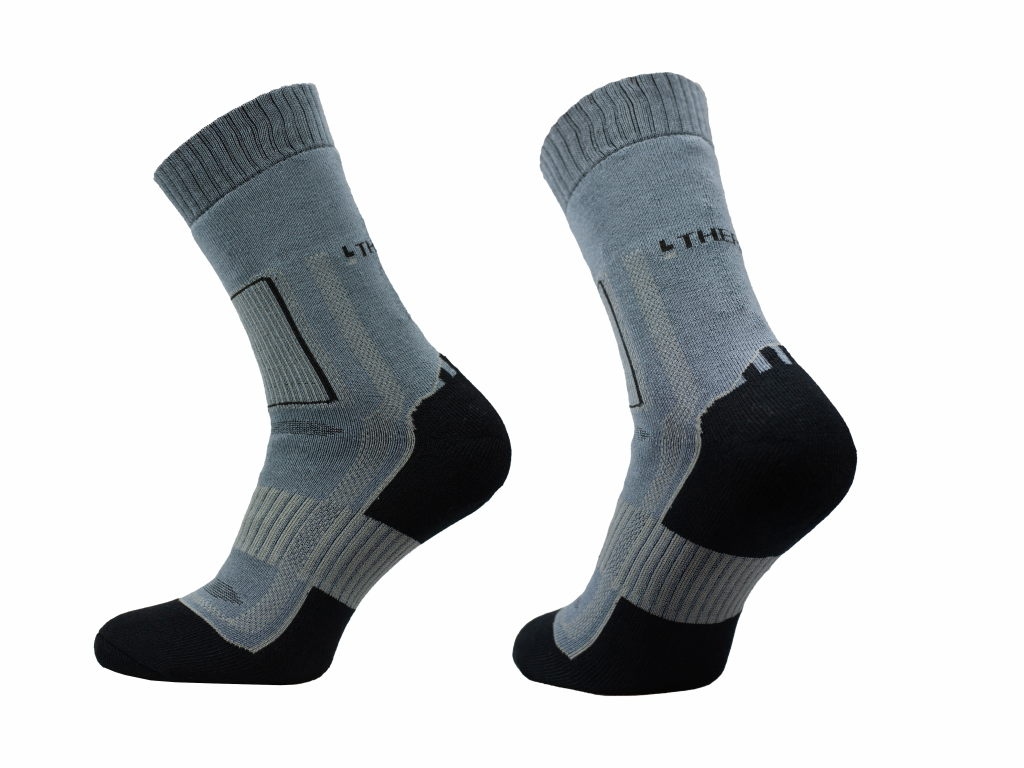 Польські, антибактеріальні, дуже щільні, бавовняні шкарпетки TREKKING THERMO FROTTE, виготовлені спеціально для нашої компанії відомим польським виробником із дотриманням високих стандартів якості. Найякісніша натуральна чесана бавовна з додаванням антибактеріальних іонів срібла PROLEN® SILTEX - м'який носок, який добре вбирає піт. Посилена основа шкарпеток гарантує, що ці шкарпетки дуже добре тримаються на нозі. Знизу подвійна махрова тканина.