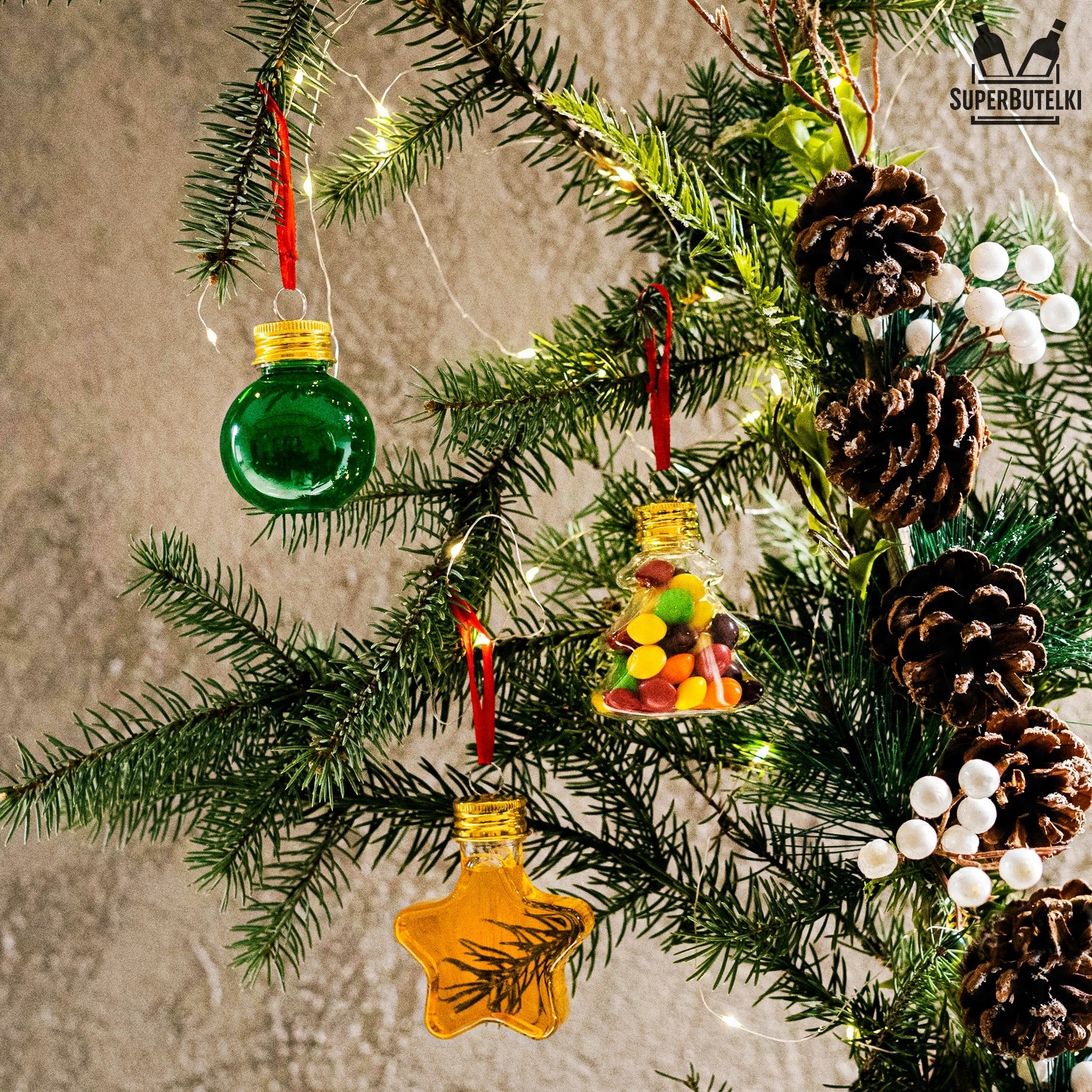 5x 50 МЛ КУЛЬКИ ДЛЯ АЛКОГОЛЮ, ЦУКЕРОК, СОКУ, ПРИКРАС - ПІДВІСИ НА ЯЛИНКУ ЗІ СТРІЧКОЮ
