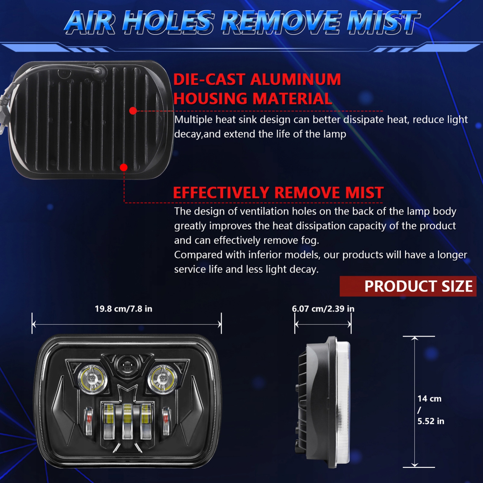 5. Використання ширини: не обмежується використанням на мотоциклах, а також заміни автомобіля тощо. Сумісний з усіма транспортними засобами з прямокутними фарами.