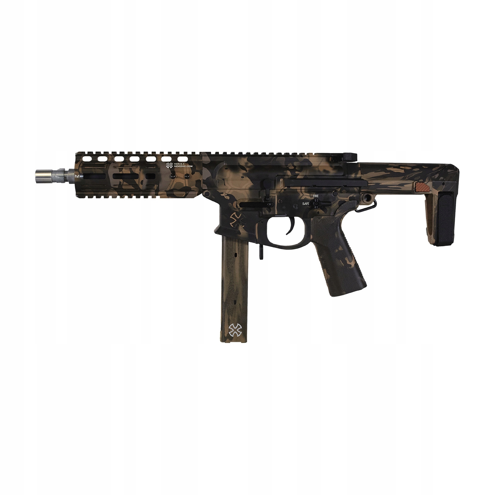 Електрична репліка 6 -мм кібергуна AEG Noveske Space Invader Kryptek була зроблена з нейлону. Він стискає кулі при швидкості до 330 кадрів в секунду - що робить його чудовим на коротких та середніх відстанях. Великою перевагою є стрибки система, яка перетворює кулю під час пострілу. Журнал був прикріплений до карабінера, в якому є аж 300 м'ячів. Репліка стріляє в одиночний і безперервний вогонь.