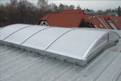 Переваги камерних полікарбонатних пластин: високе значення ізоляції; стійкий до град, довгий життя - 10 L a t gw, стійкий до погодних умов, стійкий до температури, дешеві та легкі - не потребують важкої конструкції. інших додатків: