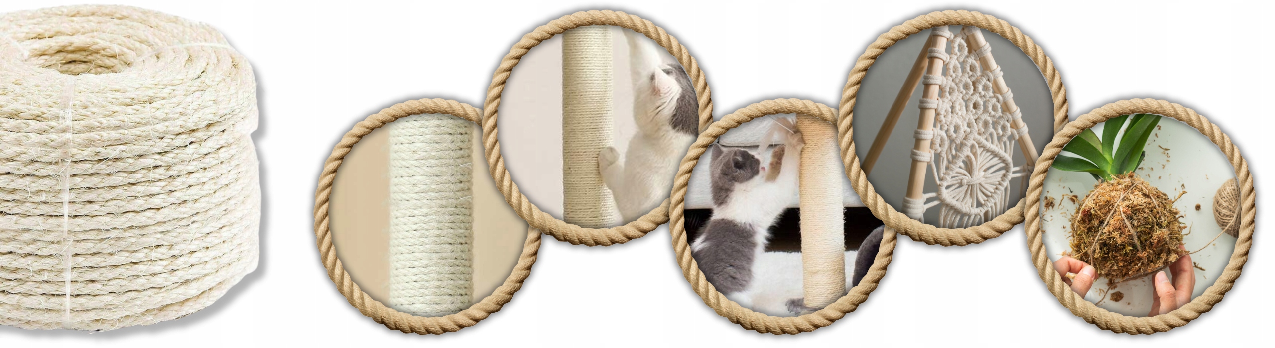 міцна і природна сизальна мотузка діаметром 6 мм і довжиною 50 м, що виробляється в Польщі. Ця мотузка, виготовлена з високої якості SISAL, характеризується високою стійкістю до міцності та стирання, що робить його ідеальним вибором для багатьох застосувань, у тому числі як елемент котячих подряпин.