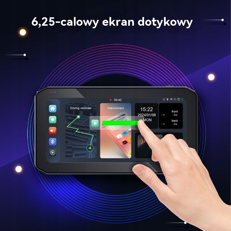 6,25-дюймовий мотоцикл HD Carplay Android Auto GPS TPMS DVR