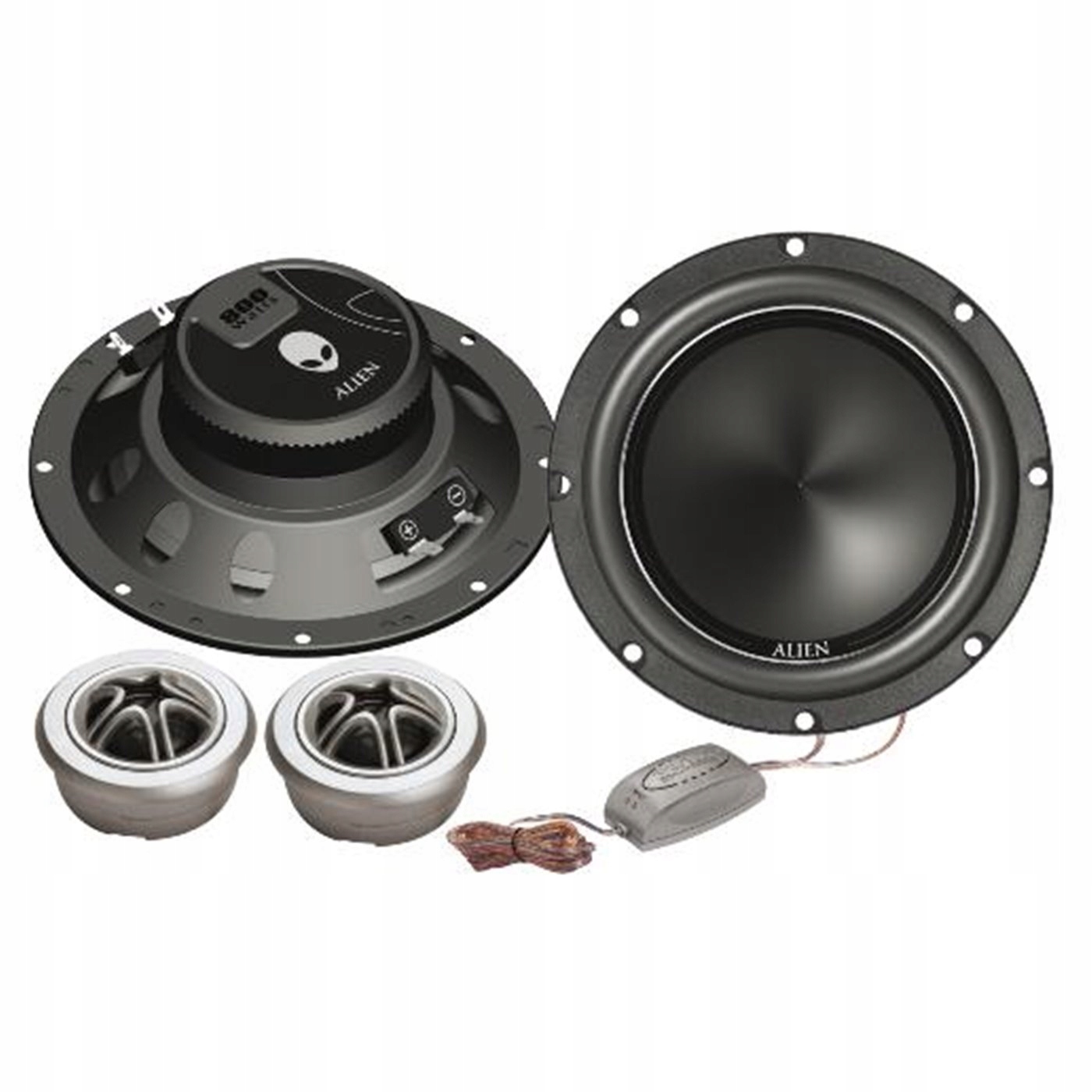 4 Набір складається з двох динаміків 6,5 "та двох твіттерів. Набір також включає 2 комутатори, 2 гучномовці середнього рівня та набір аксесуарів проводки та монтажу.