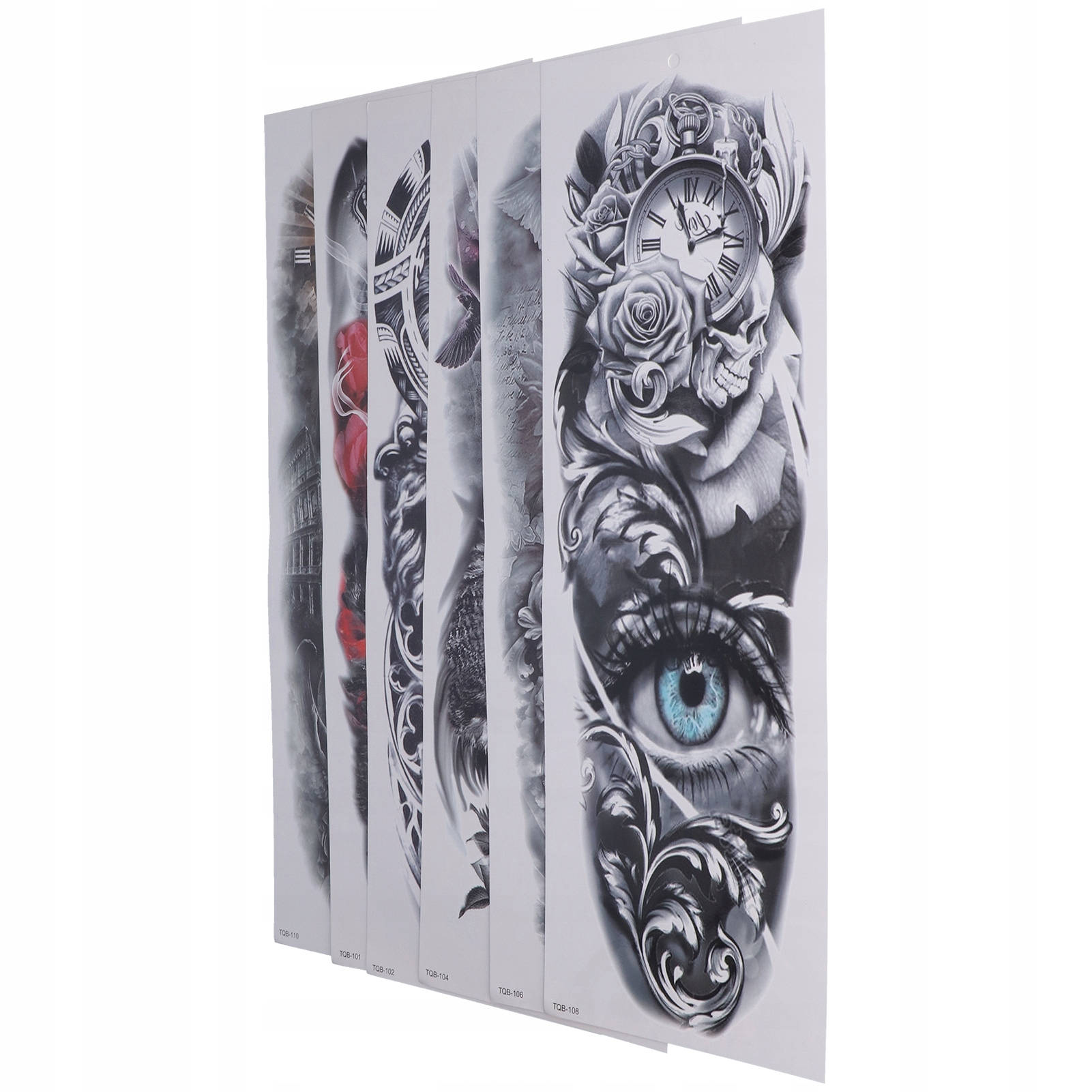 6 аркушів повного рукава тимчасові татуювання водонепроникні наклейки дуже великі