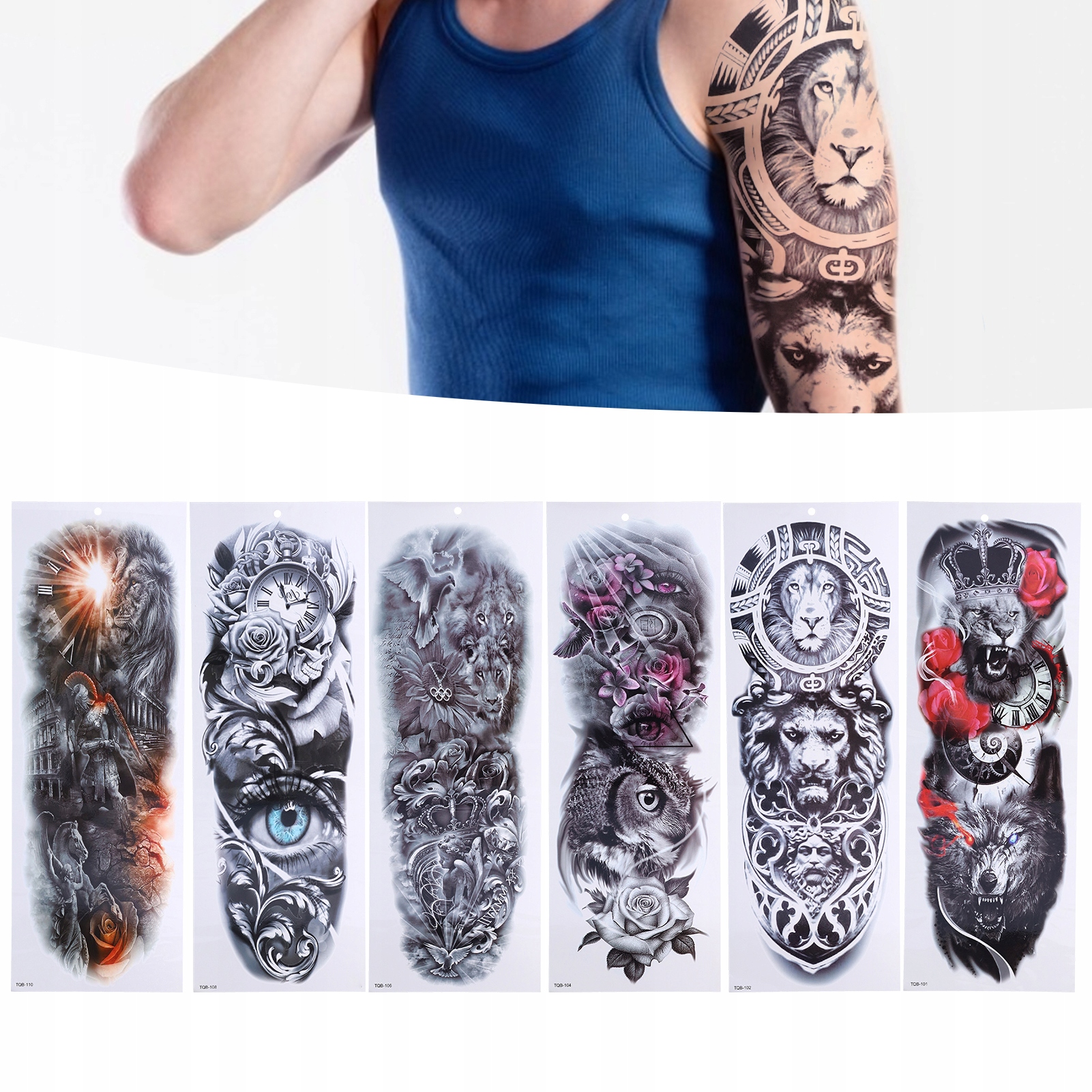 6 аркушів водонепроникних тимчасових татуювань Extra A1 на повний рукав