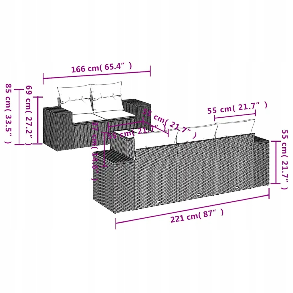 6-cz. zestaw mebli ogrodowych, z poduszkami, jasno
