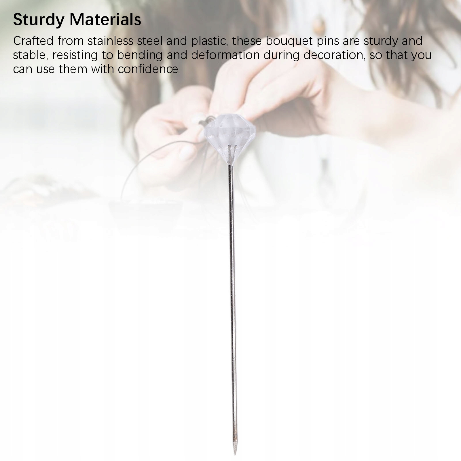 1. УНІВЕРСАЛЬНІ ТА ІННОВАЦІЙНІ: прозорі, кришталеві шпильки можна використовувати не лише для аксесуарів і букетів, але й для вечірок, весільних прикрас, шиття та ремесел. Дайте волю своїй уяві та створюйте вражаючі вироби за допомогою цих універсальних шпильок.