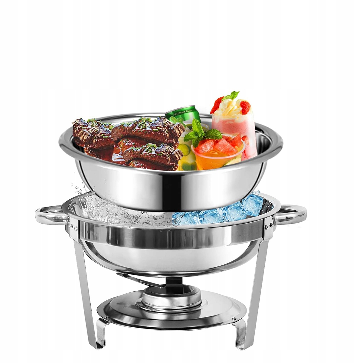 Тарілка для обіду містить до 5 літрів вареної їжі, а 6-літрова каструля BEMAR забезпечує безпечну підтримку лотка з їжею, забезпечуючи навіть розподіл тепла після наповненого гарячою водою. Купольні кришки зупиняють тепло, щоб підтримувати температуру та свіжість їжі, а інтегровані ручки полегшують переміщення суден. Матеріал з нержавіючої сталі, безпечний для їжі, забезпечує безпеку.