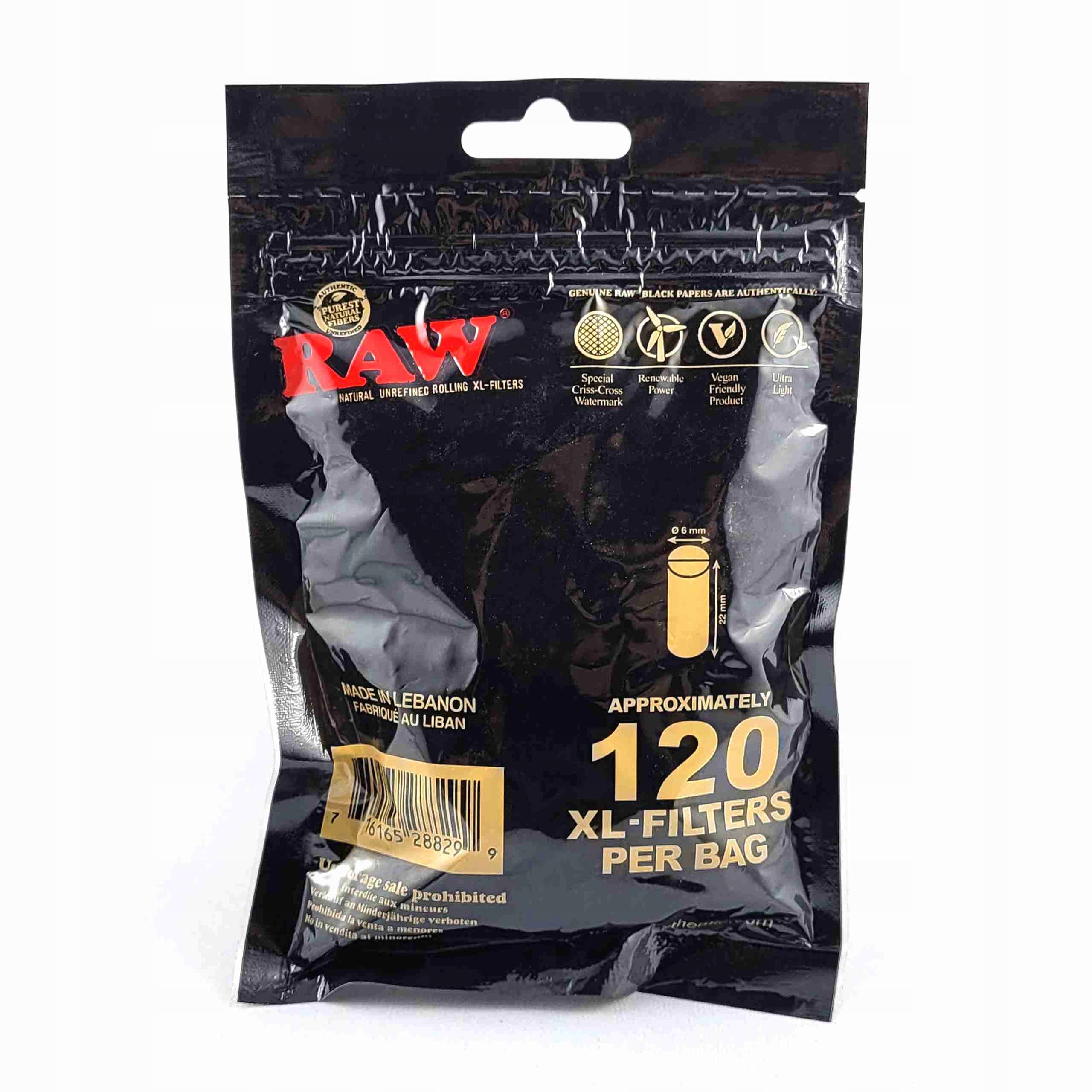 Фільтри RAW Natural Unrefined виготовляються з рослинної целюлози і є дуже цікавою альтернативою, наприклад, паперовим фільтрам. Вони забезпечують вільний потік диму і не змінюють смак і запах палаючого тютюну. Параметри: діаметр 6 мм / довжина 22 мм / упаковка 120 шт.