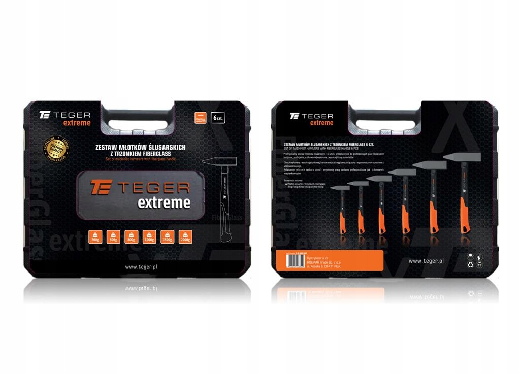 Набір слюсарних молотків зі склопластиковою ручкою (6 шт.) 300 500 800 1000 1500 2000 г Extreme TEGER
