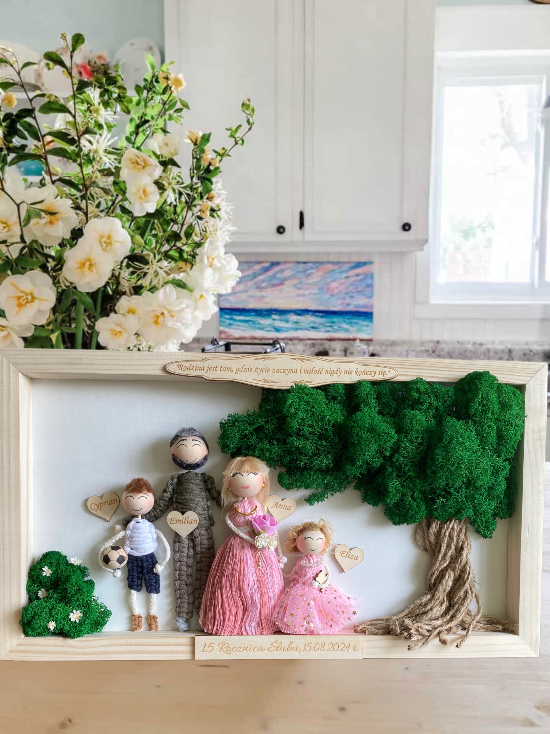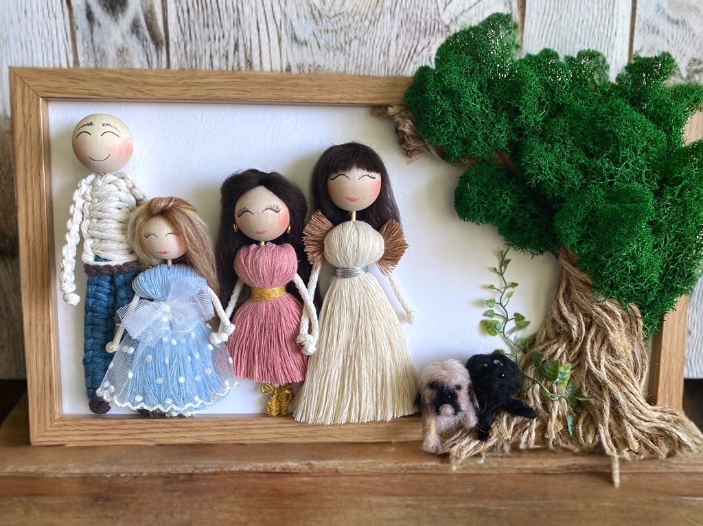 6 osób Ramka rodzinna z makramy postaci figurki rodzina portret rodzinny