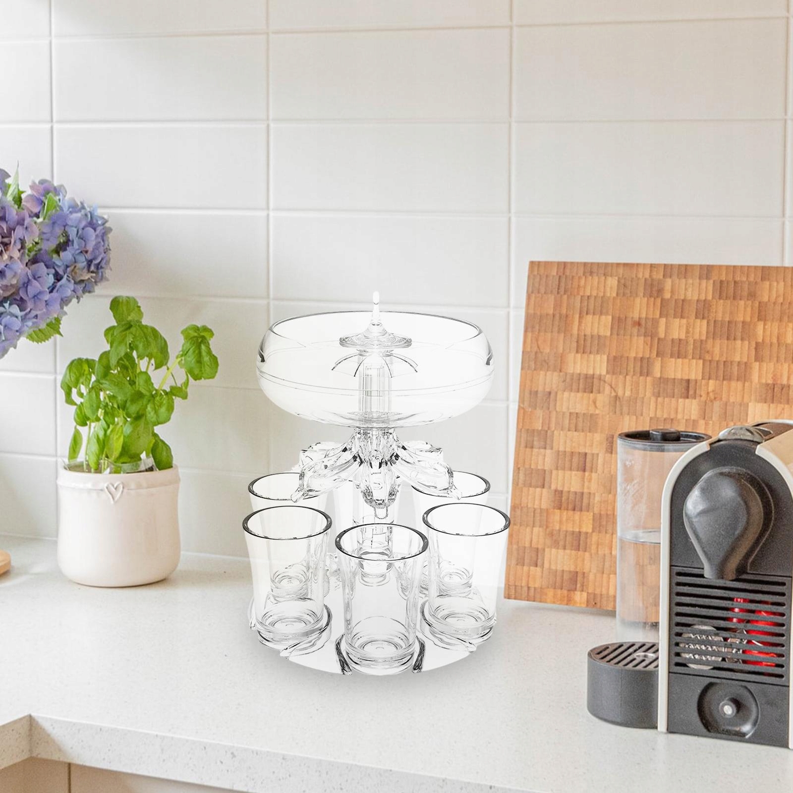 Дизпенсер для напоїв має шість отворів і оснащений м'якою силіконовою пробкою, яка економить час і зусилля та створює атмосферу вечірки.