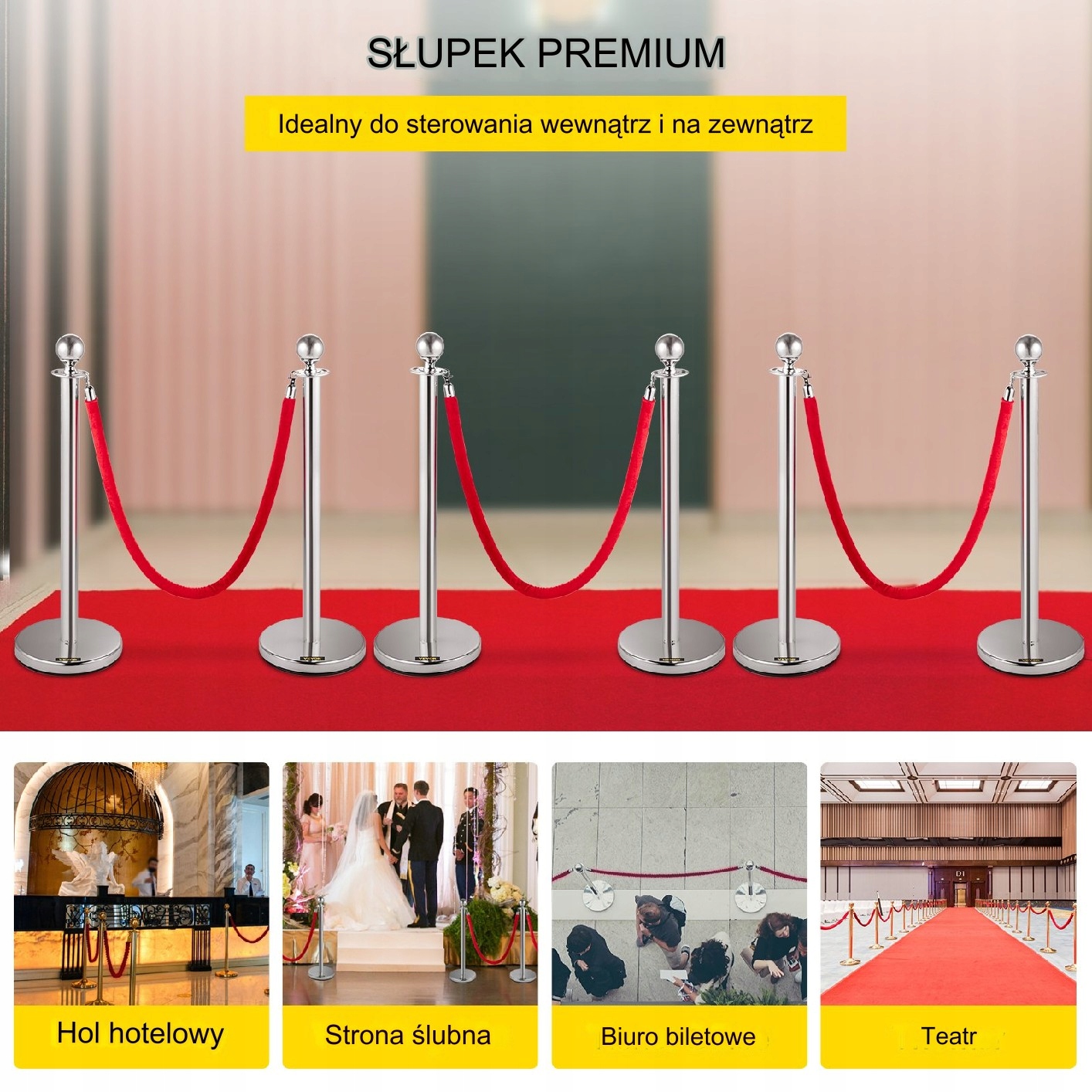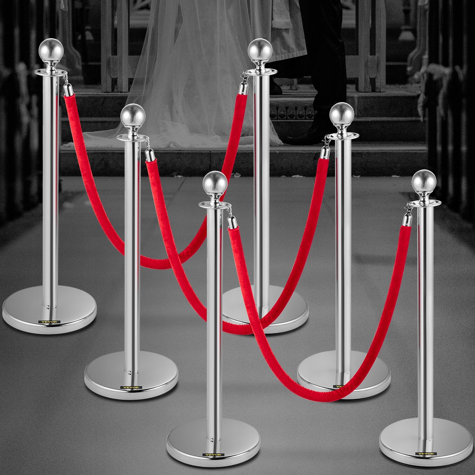 Червоні мотузки та срібні жердини створюють елегантний і професійний вигляд. Ідеально підходить для організації заходів, які вимагають унікальної естетики. Ідеально підходить для урочистостей, банкетів та інших престижних заходів.