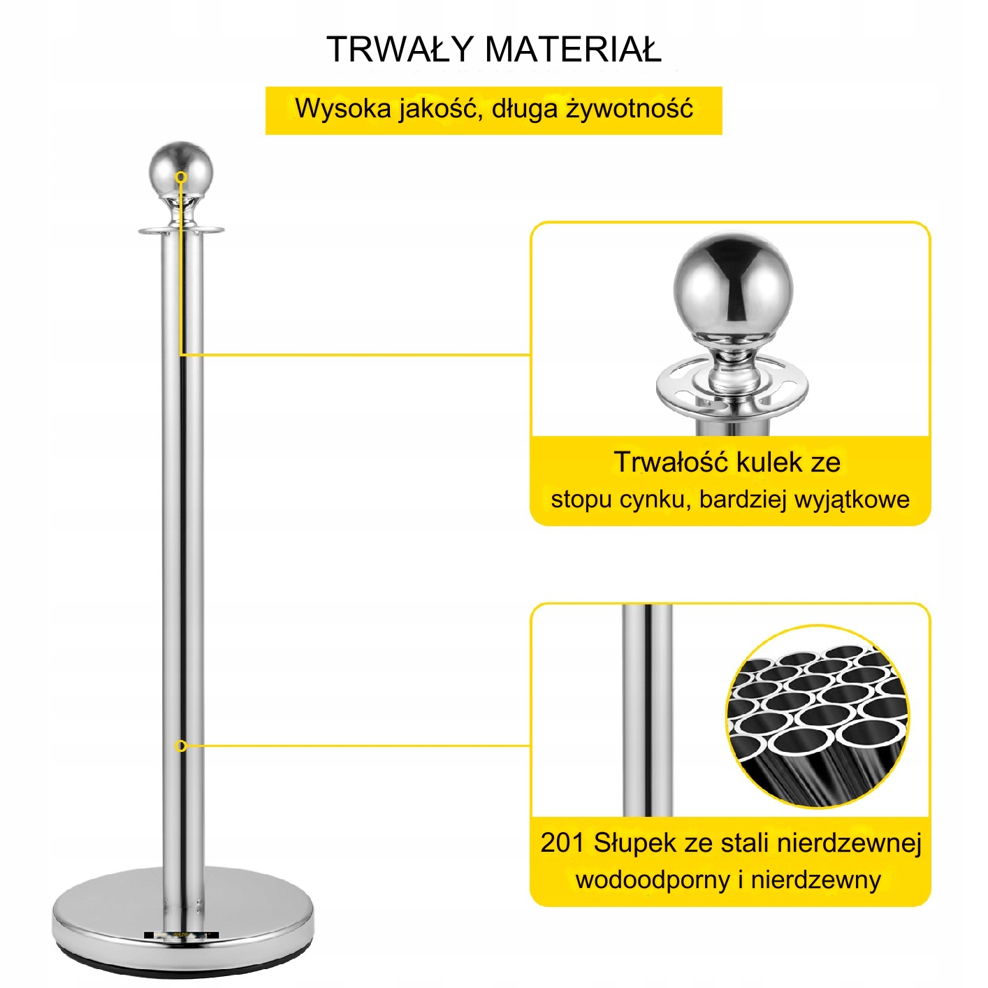 Набір із 6 стовпів дозволяє ефективно керувати великими просторами. Ідеально підходить для організації черг і позначення зон на великих заходах. Повна комплектація забезпечує повну функціональність і естетичність.